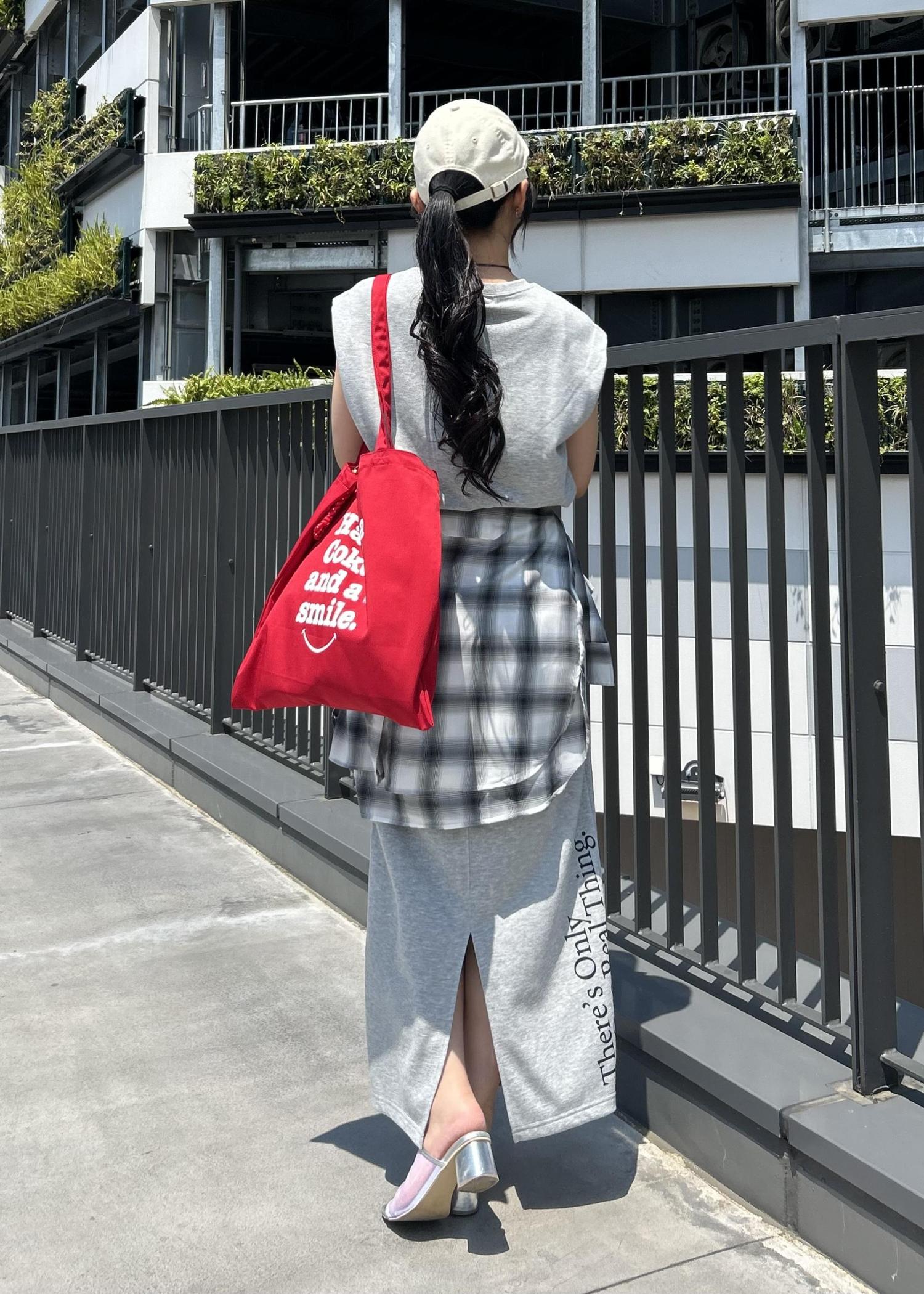 ノースリーブトップスにセットアップのスカートを合わせて、
