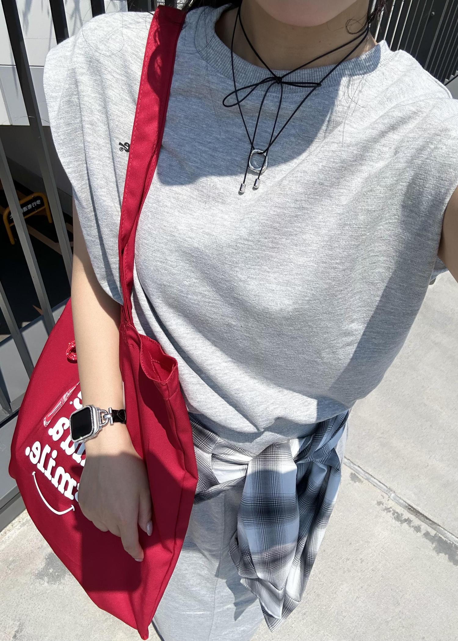 夏のカジュアルスタイルをグレーのワントーンでまとめたコーデです。