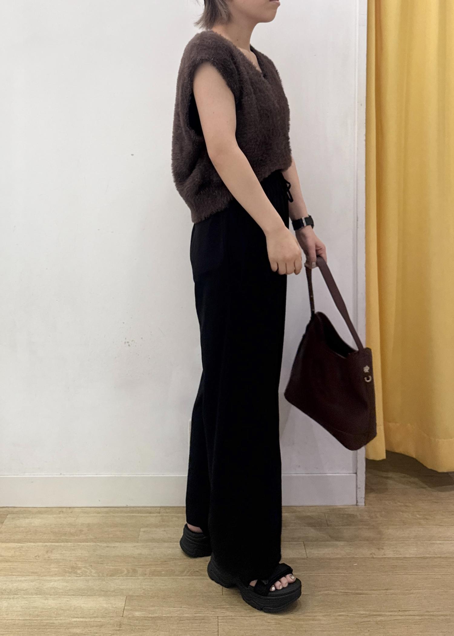 ブラック×ブラウンのシックなコーディネートは秋に向けてもオススメのコーディネートです☺︎