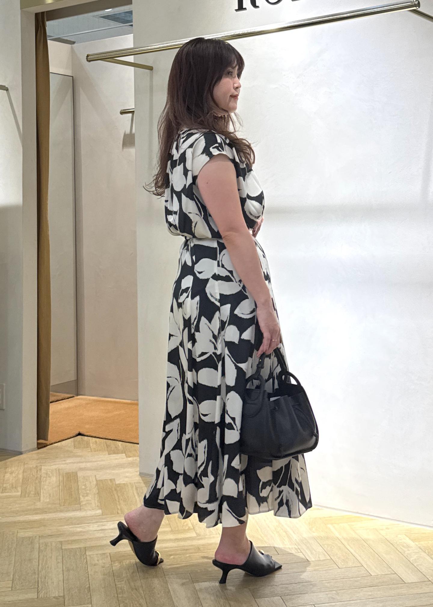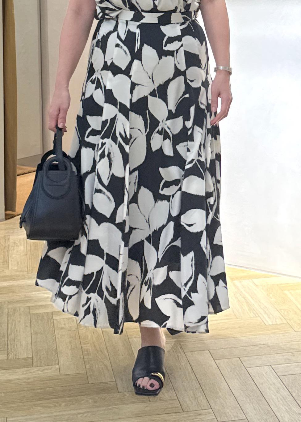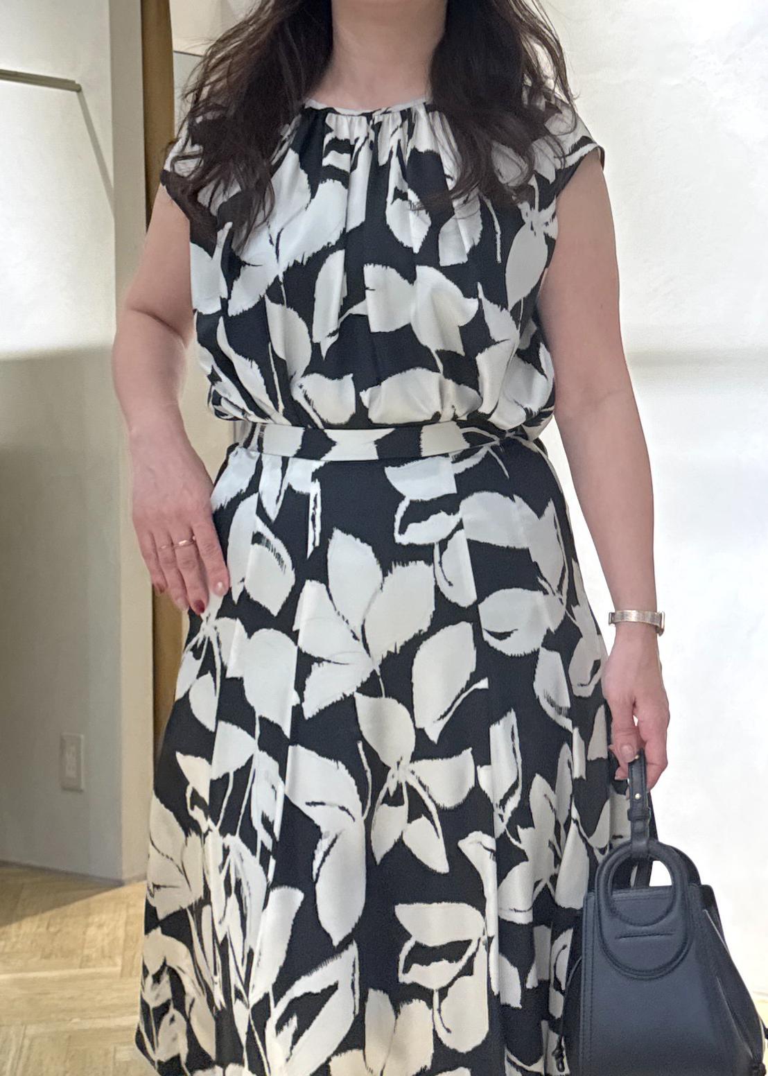 華やかなイメージの大きめプリントですがモノトーンなら派手すぎず、上品さもあり着やすいと思います。