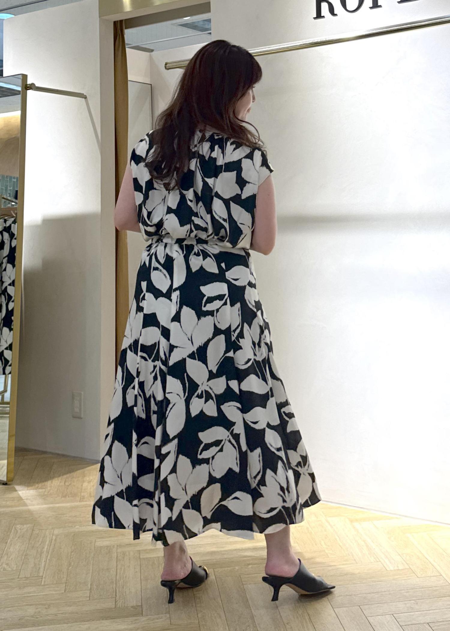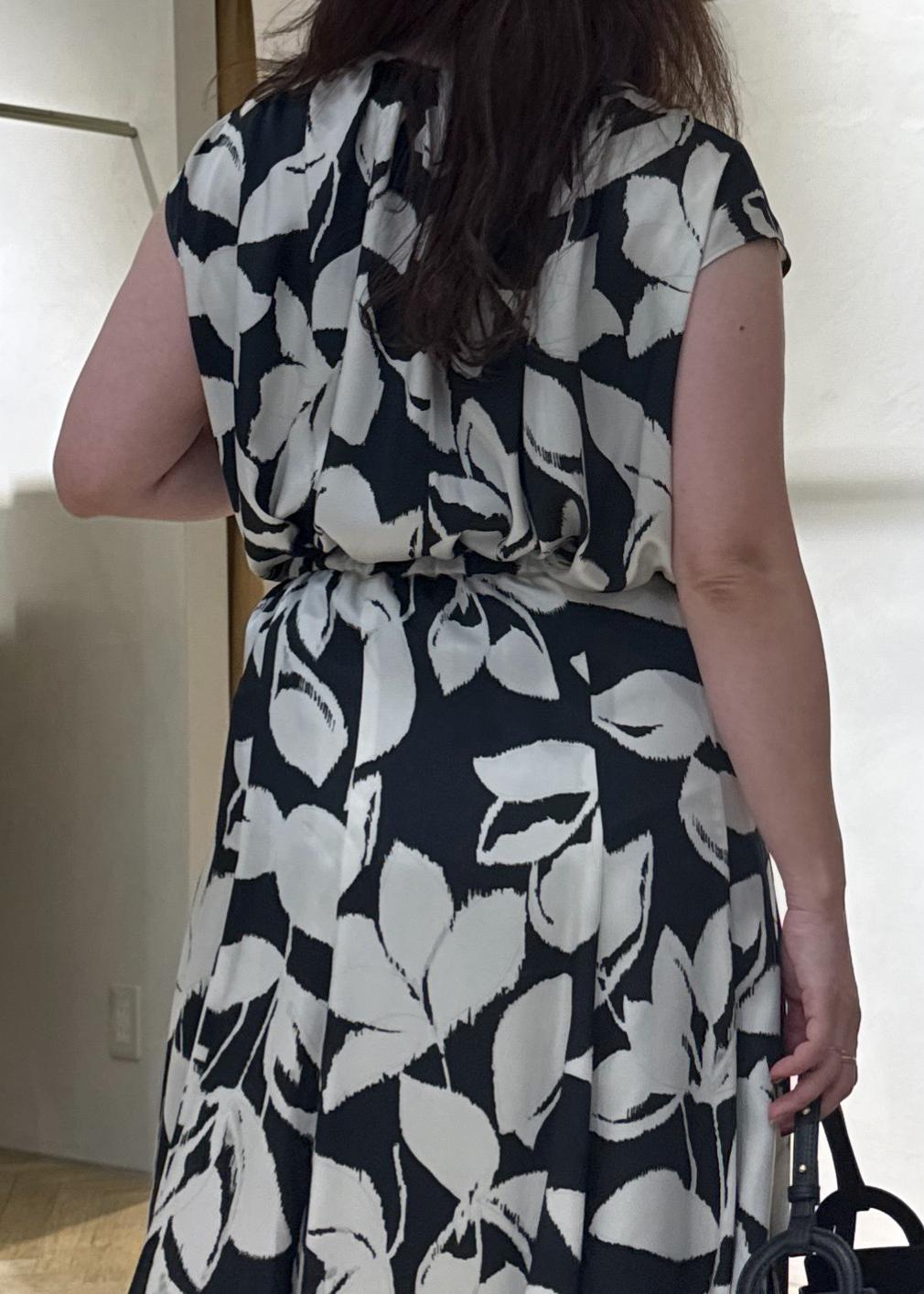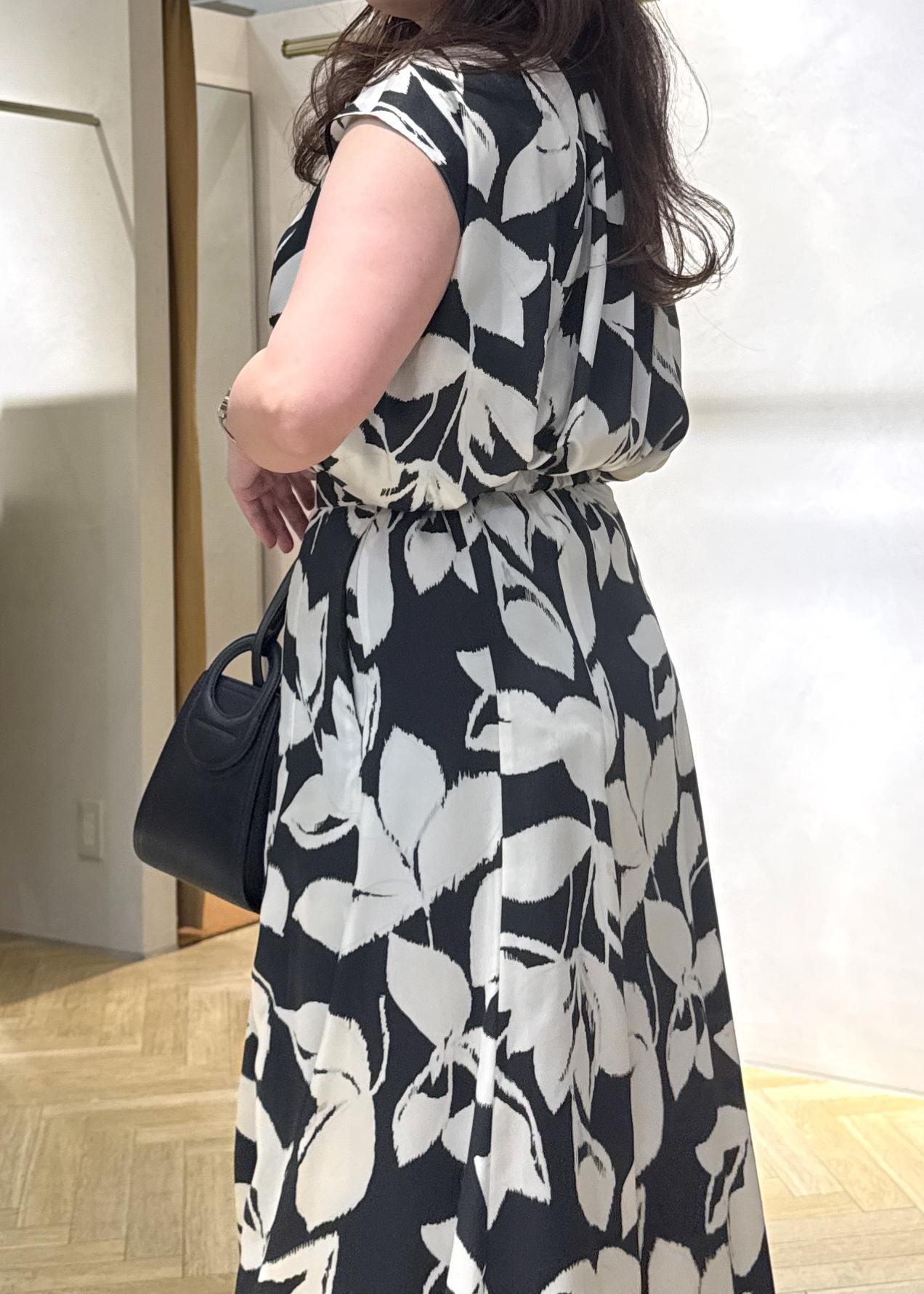 華やかなイメージの大きめプリントですがモノトーンなら派手すぎず、上品さもあり着やすいと思います。