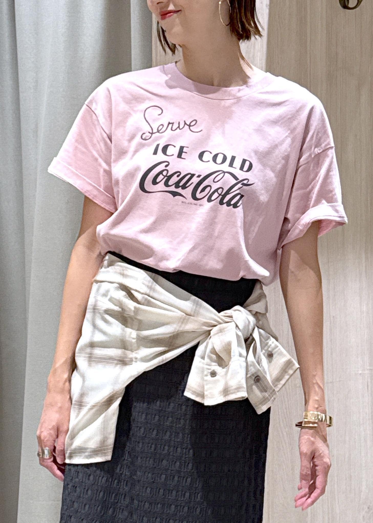 VIS【Coca-Cola】VIS別注フォト&ロゴプリントアソートTシャツピンク / F¥3,850レビュー身長166センチでお尻隠れるオーバーな長さでした。