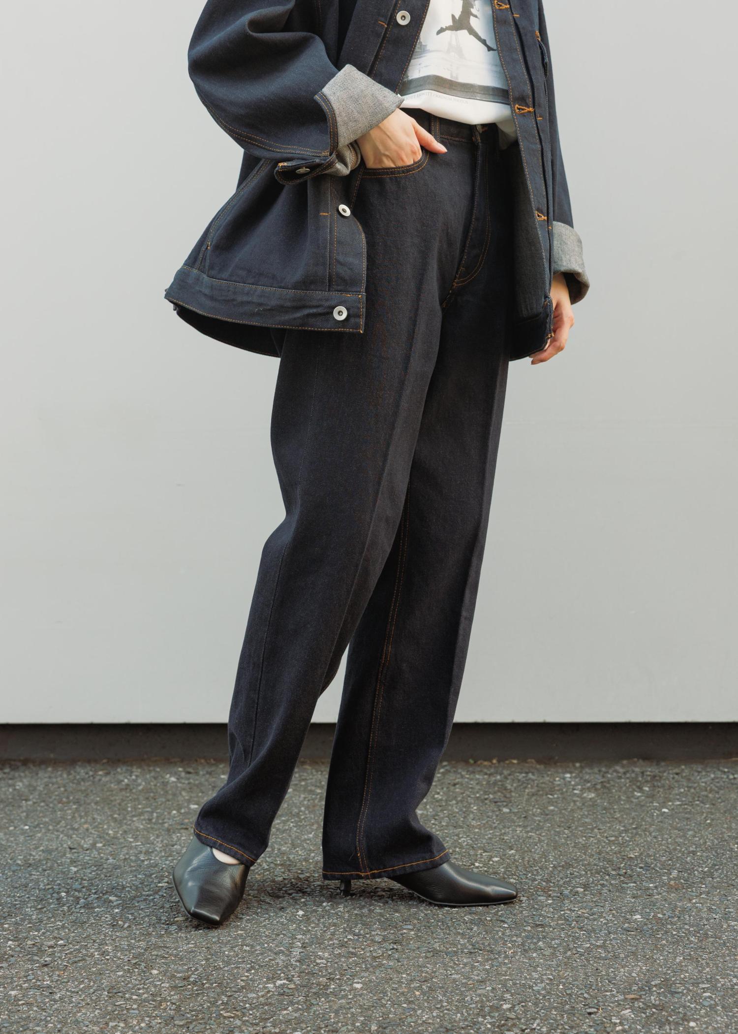 ADAM ET ROPÉ HOMMEストレート スラックスデニム / ADAM ET ROPE' JEANS -IMAG-ネイビー / S¥15,400レビューSサイズ着用でしたが、普段Sサイズ着用の156cmだと、ウエストがかなり大きかったのでベルトの使用をお勧めします!シルエットがとてもきれいで、センタープレスも入っているので、足を細く長く見せてくれます☺︎