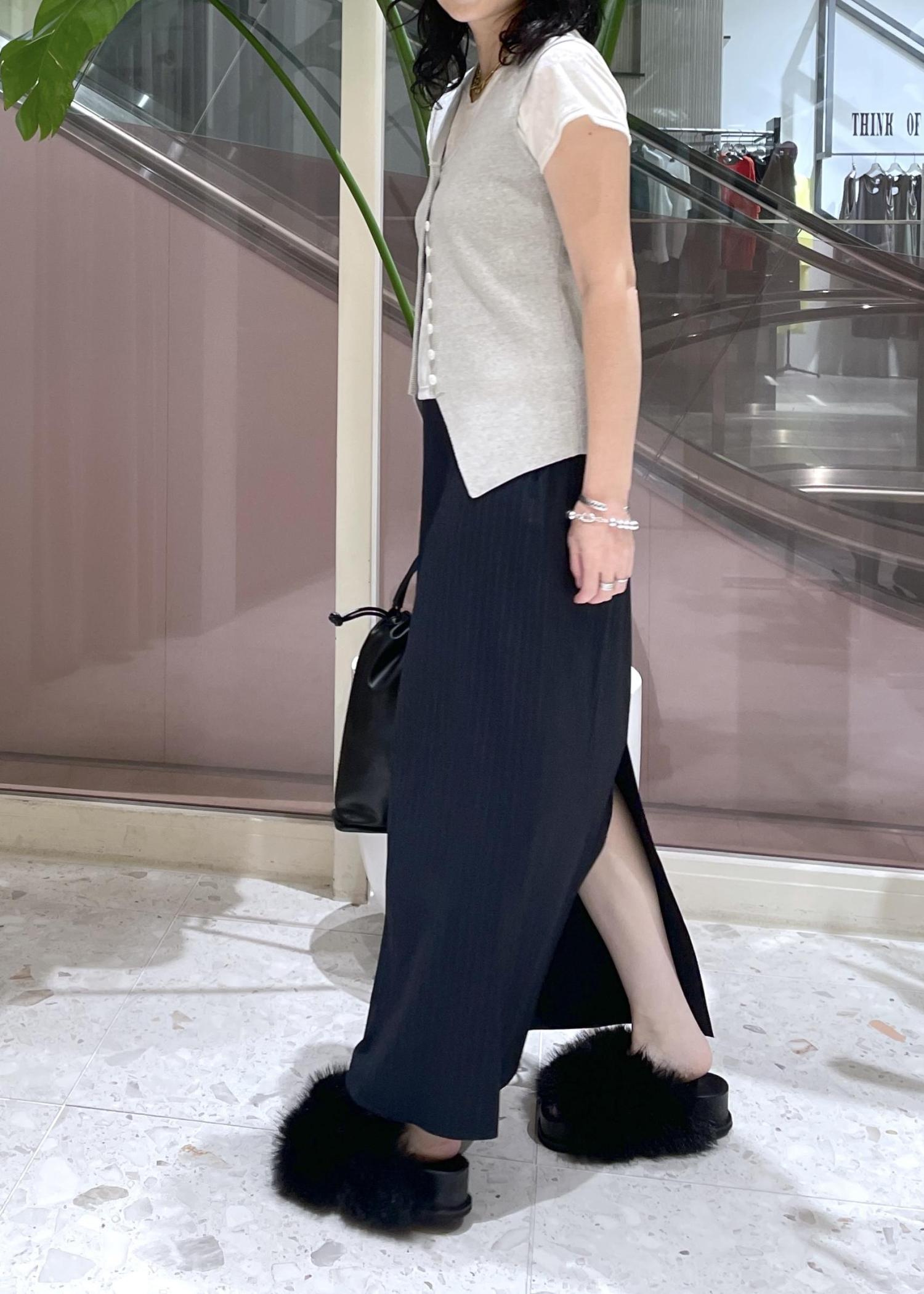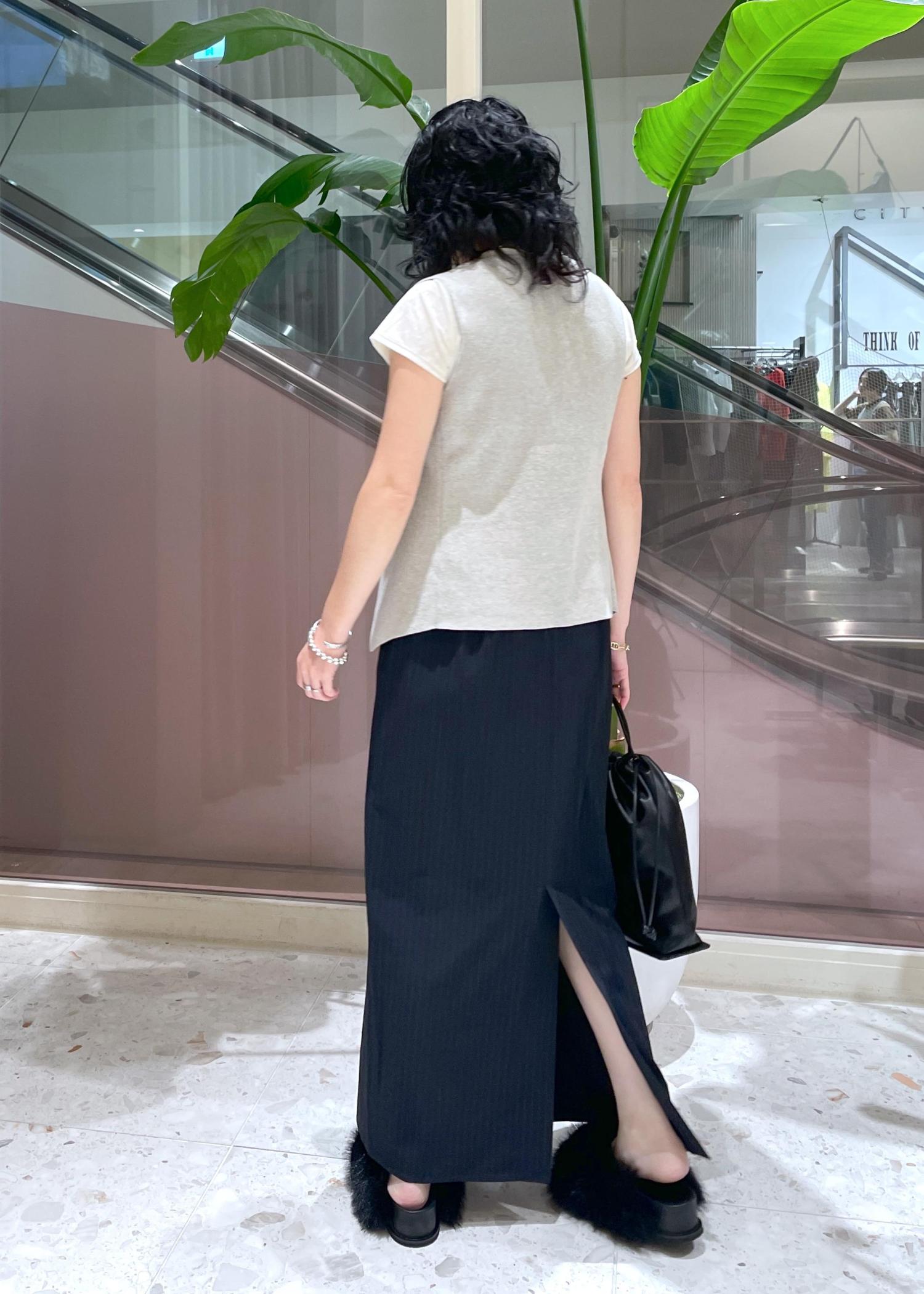 ストンと落ちるIラインシルエットで、色々なトップスにも合わせやすく、オンオフ着回せます!