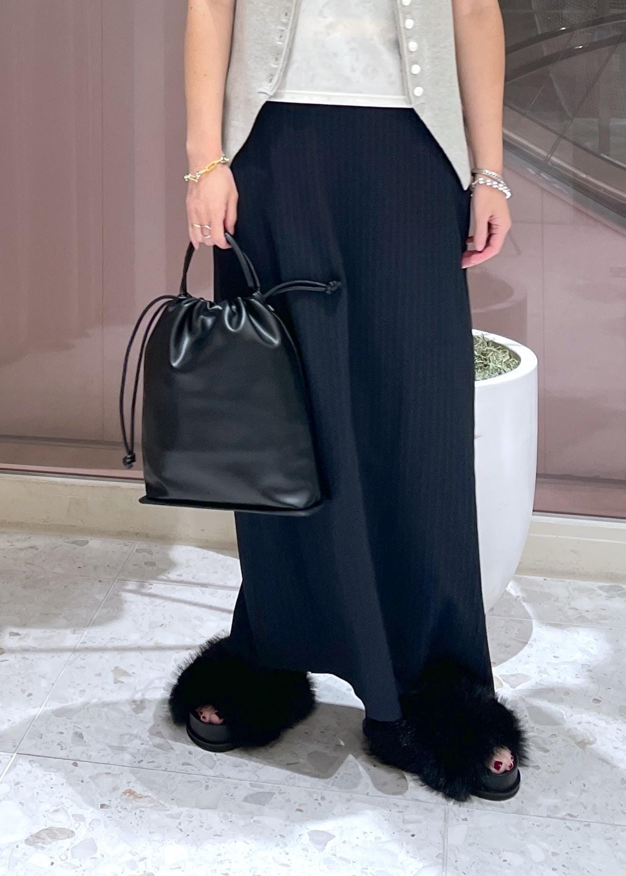 ADAM ET ROPÉ FEMME【サステナブル】アーティフシャルレザー巾着バッグブラック / F¥13,860レビュー長財布や500mlのペットボトル・折り畳み傘などが収まるサイズ感で、普段使いしやすいです。