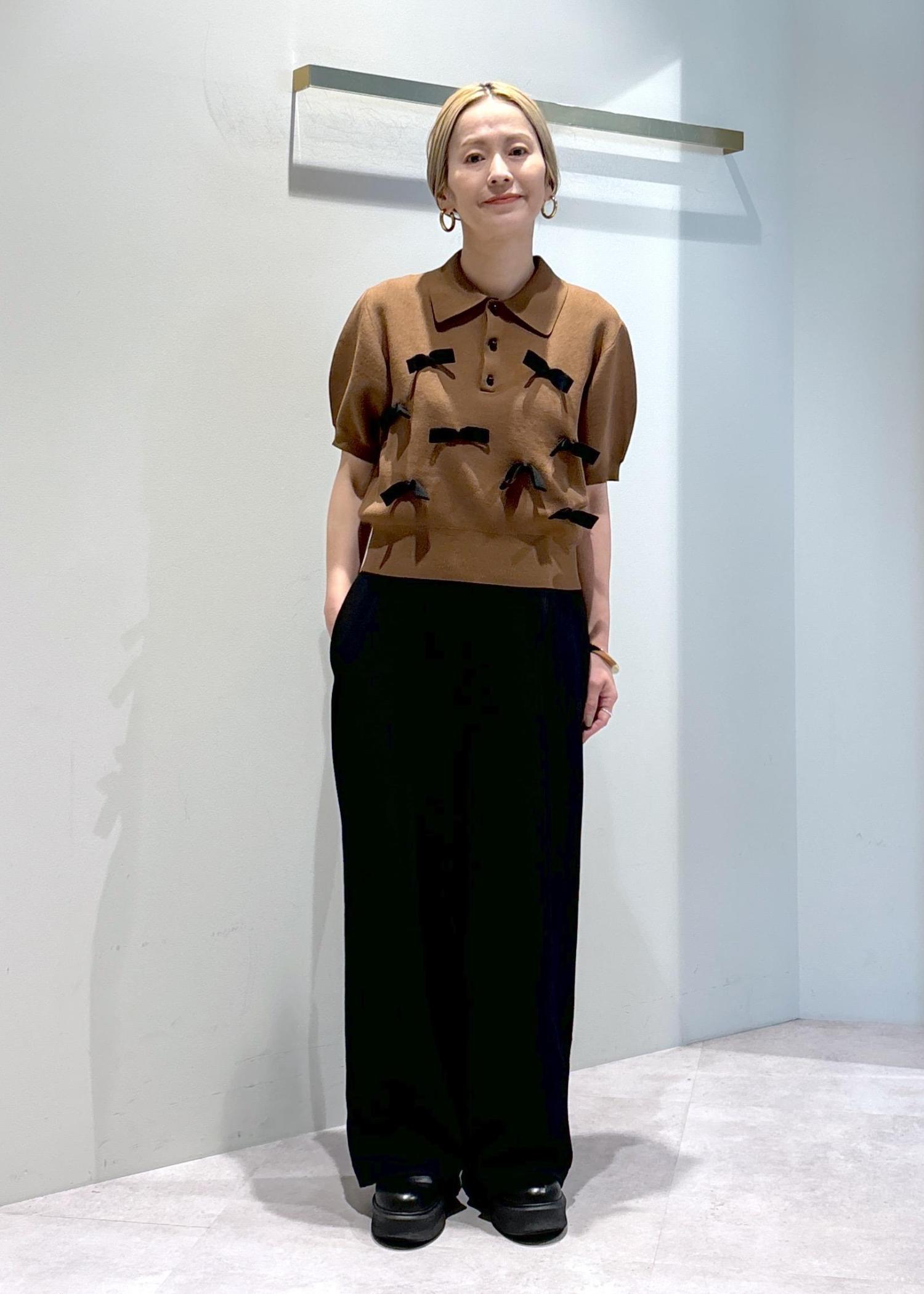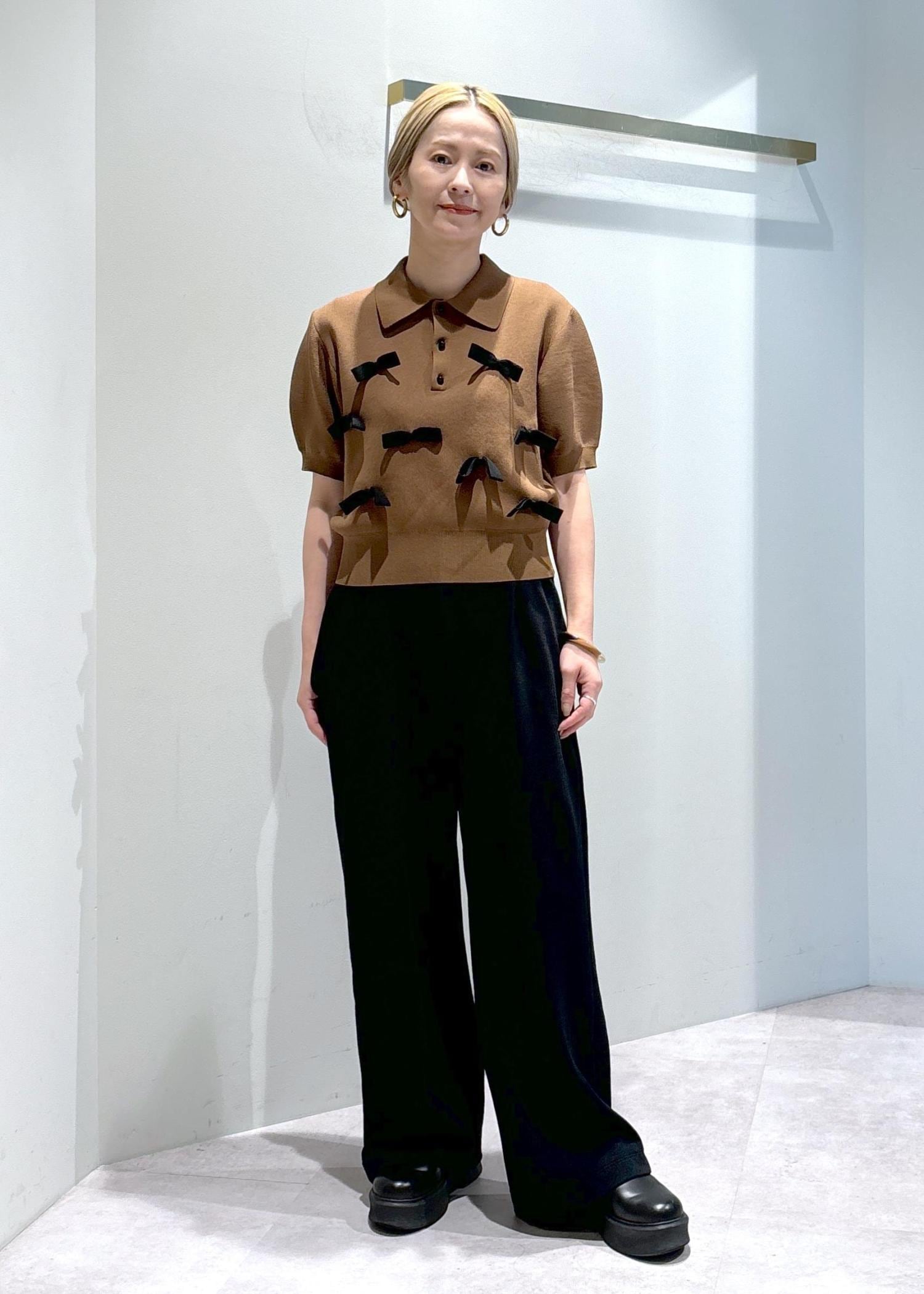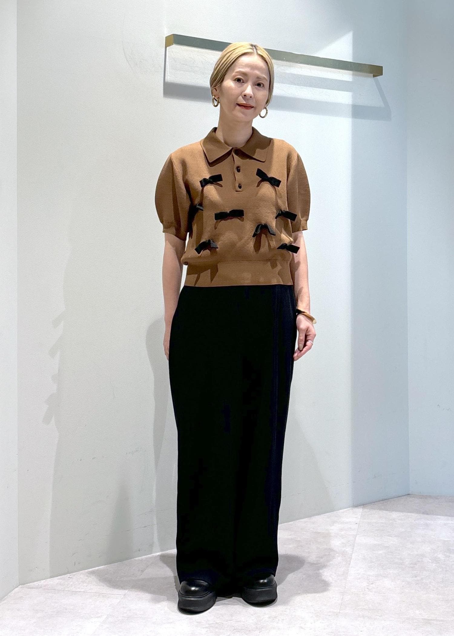 まだまだ暑い日が続いておりますが、リボンポロニットのブラウンで気分だけでも秋を意識したスタイリングにしてみました!