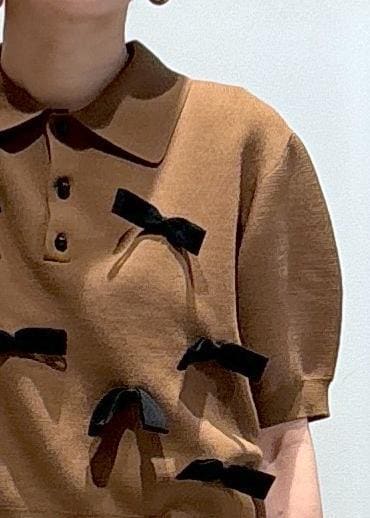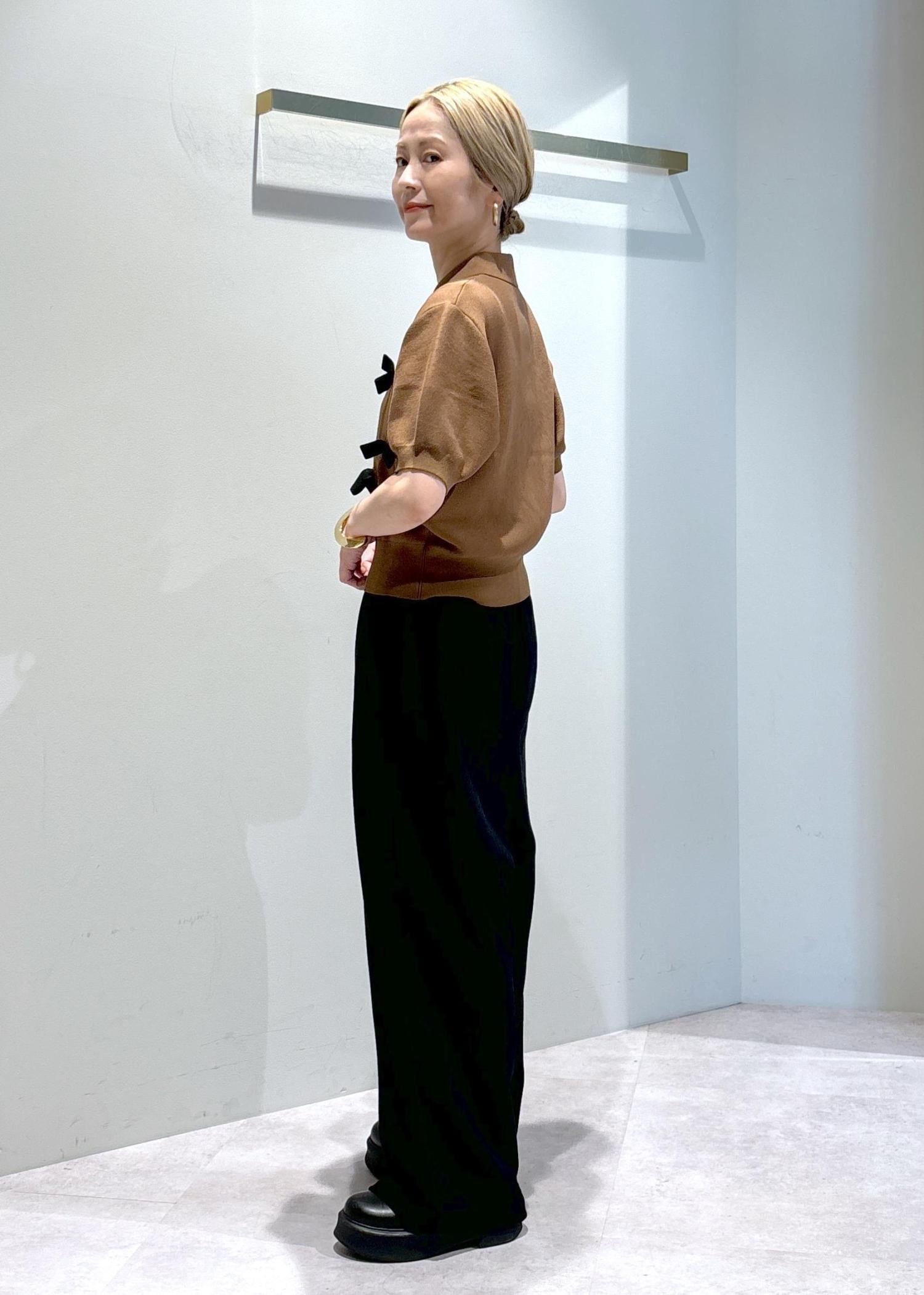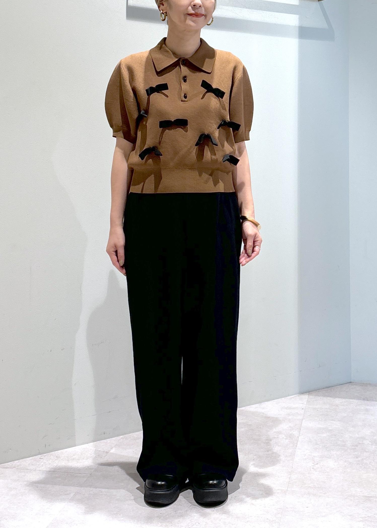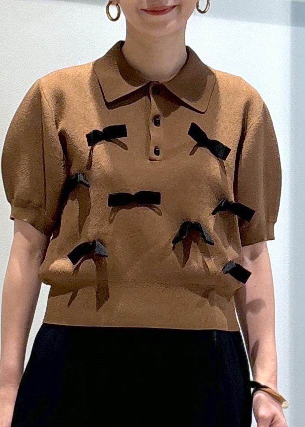 まだまだ暑い日が続いておりますが、リボンポロニットのブラウンで気分だけでも秋を意識したスタイリングにしてみました!