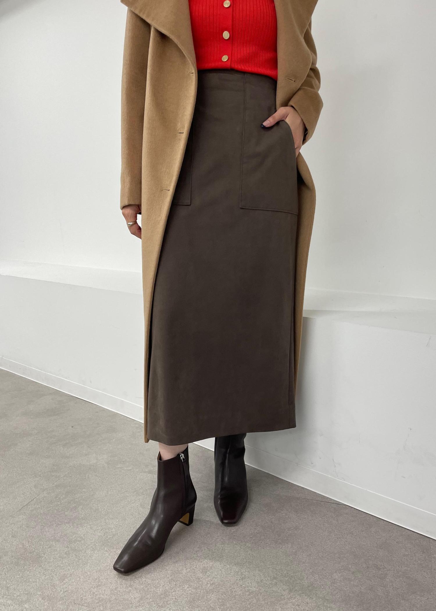 NEW!ROPÉ[美人スカート]スエードポケット付きタイトスカート/イージーケアダークブラウン / 38¥25,300レビュー161cmで38サイズを着用。