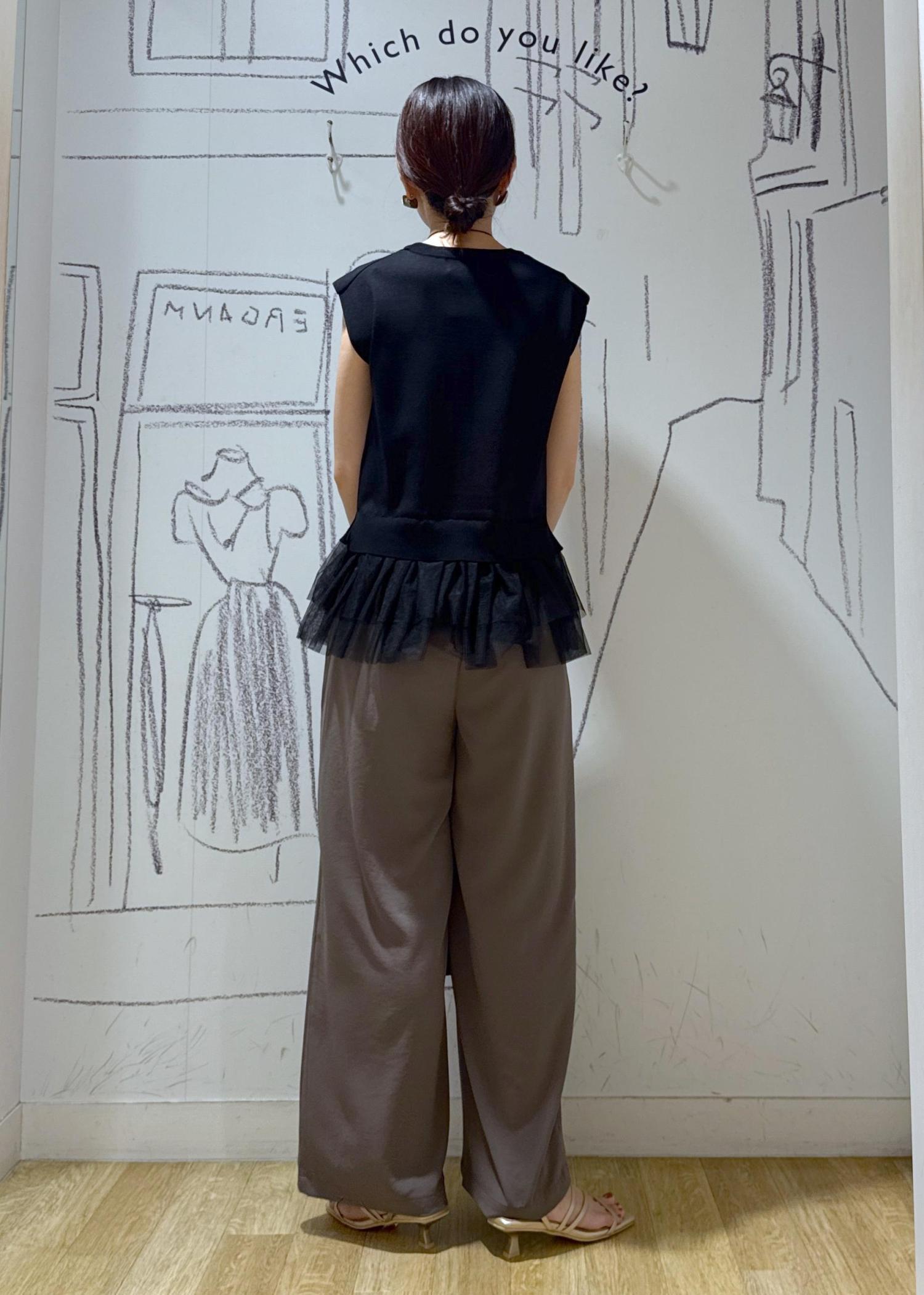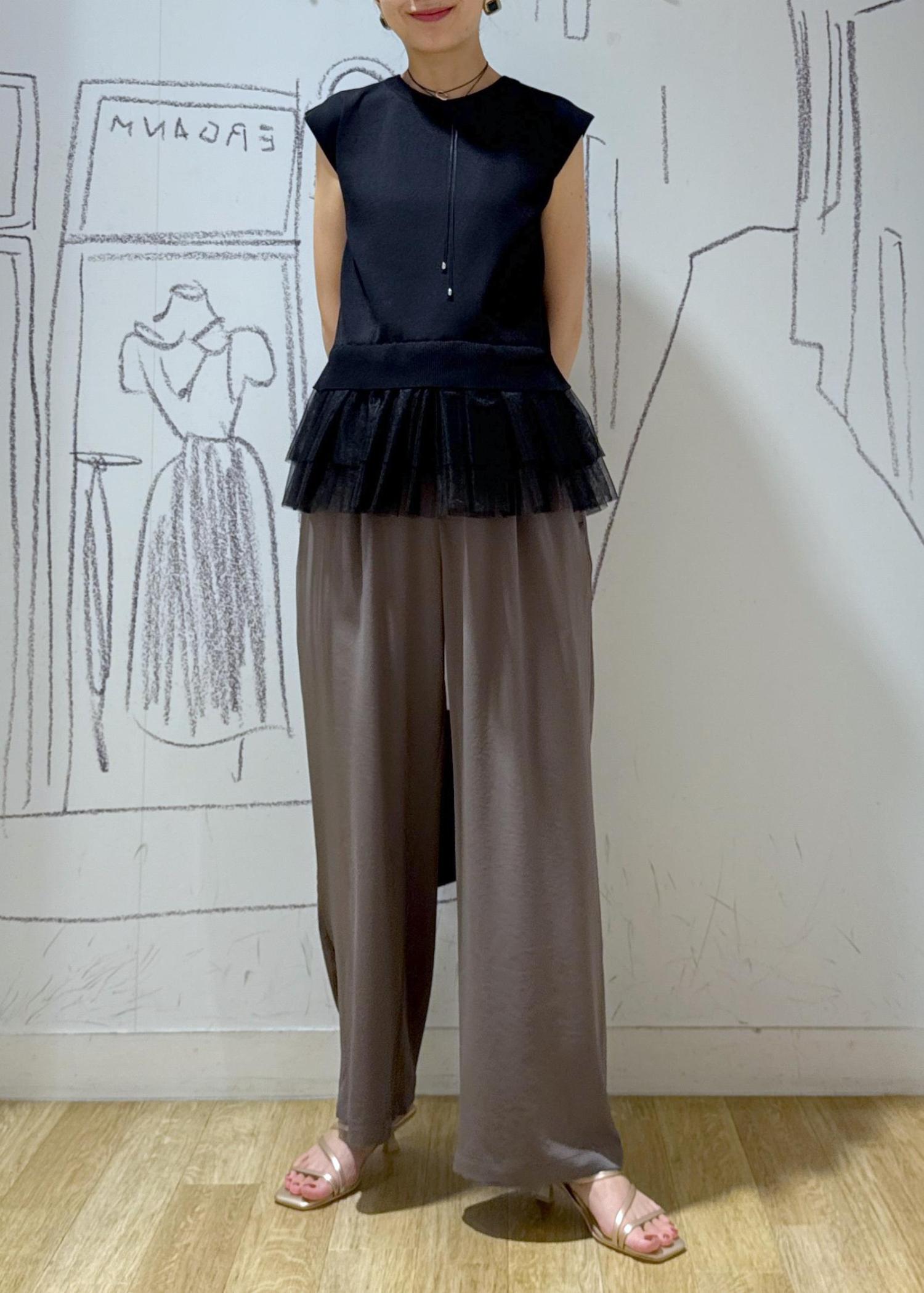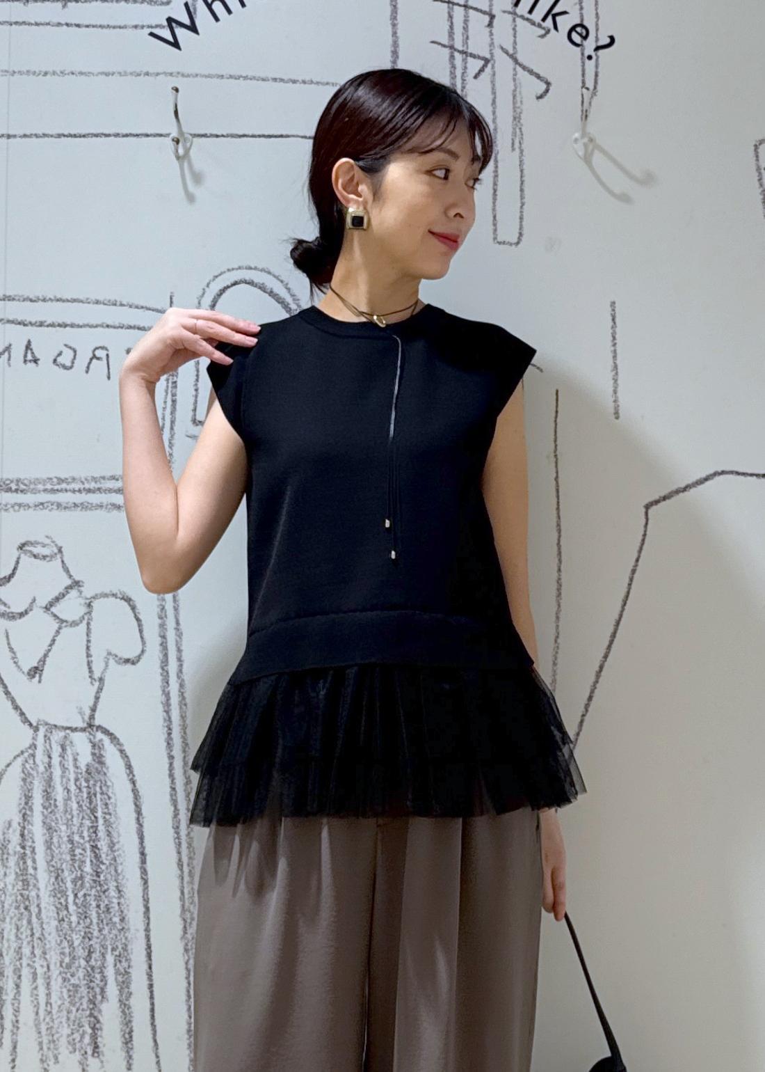 ROPÉ PICNICチュールドッキングプルオーバーブラック / F¥2,992レビュー二の腕に少し掛かる袖丈。腰回りはチュールで可愛くカバーしてくれるのが嬉しいデザイン。首周りは割とコンパクトなので先に着替えてからヘアメイクするのがお勧めです。