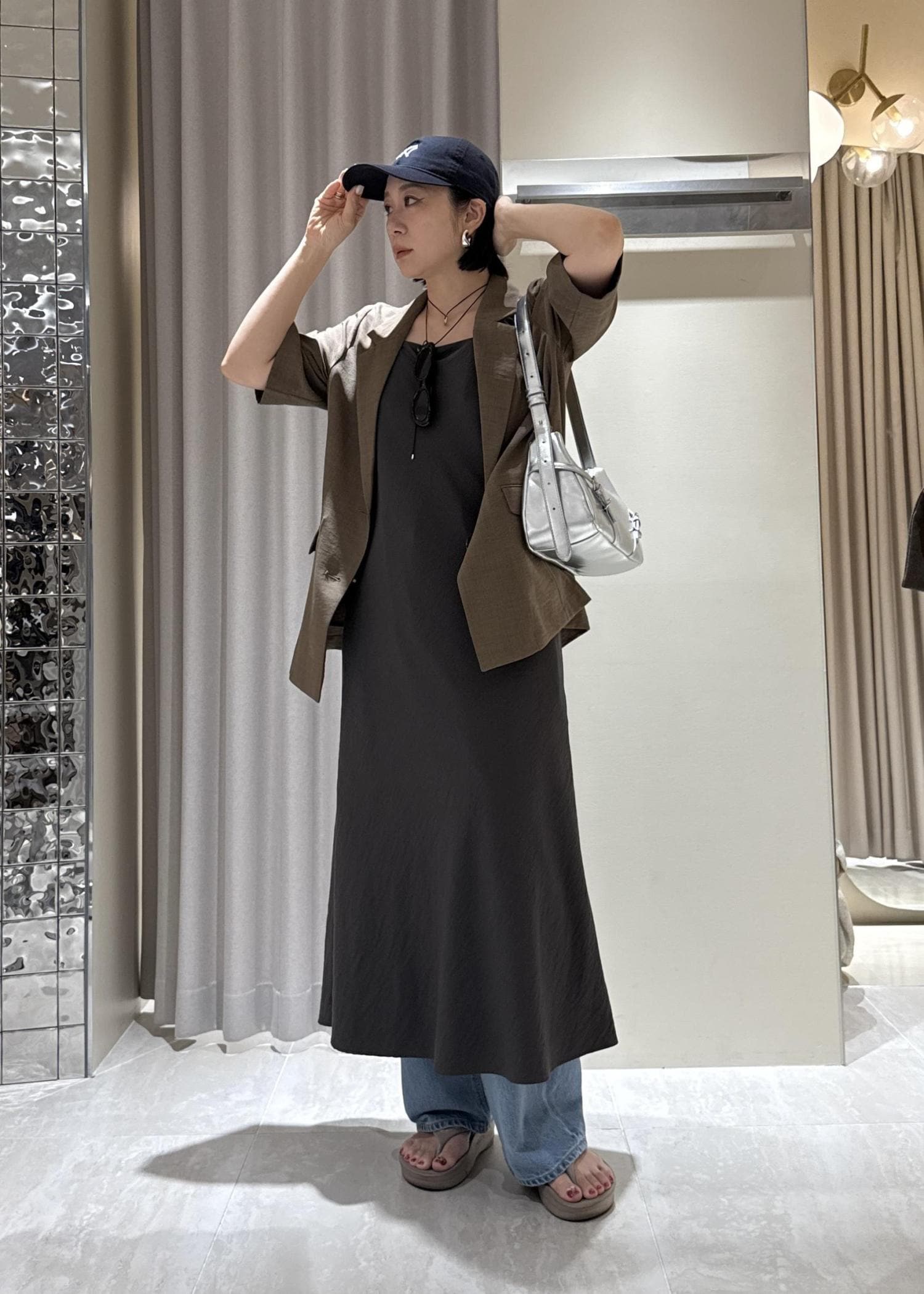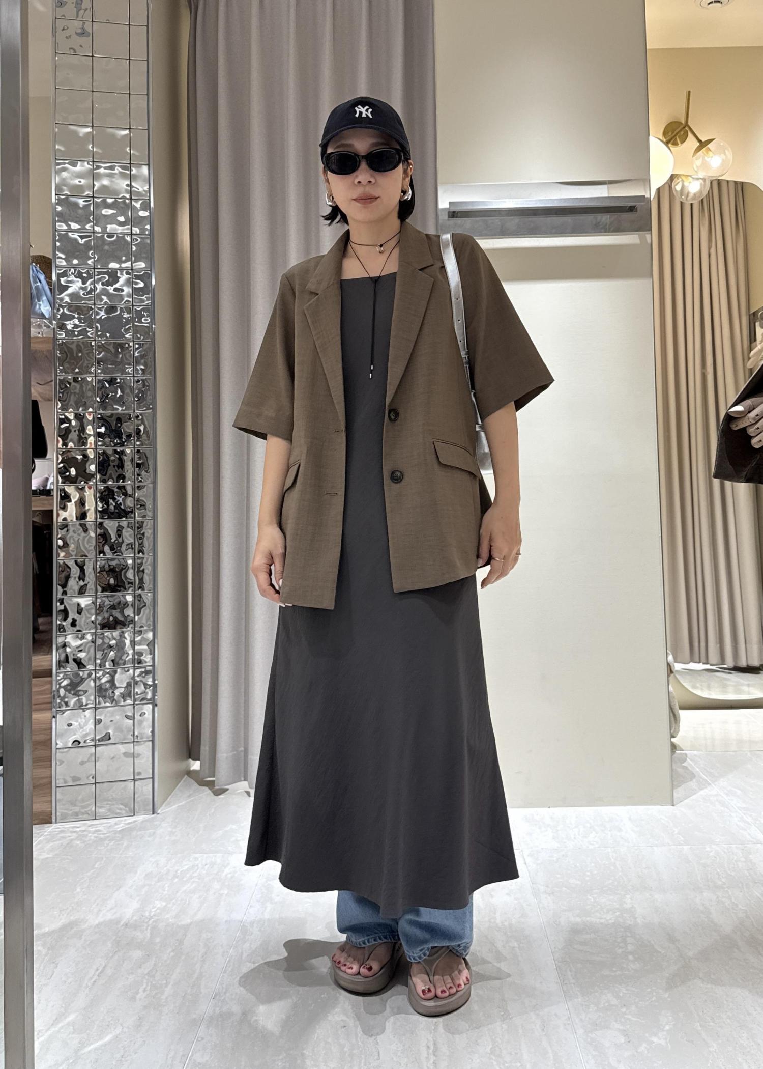 アウトレットVISバイヤス仕立てナローキャミワンピースチャコール / F¥3,076レビューサラッと軽くて涼しいワンピースです。