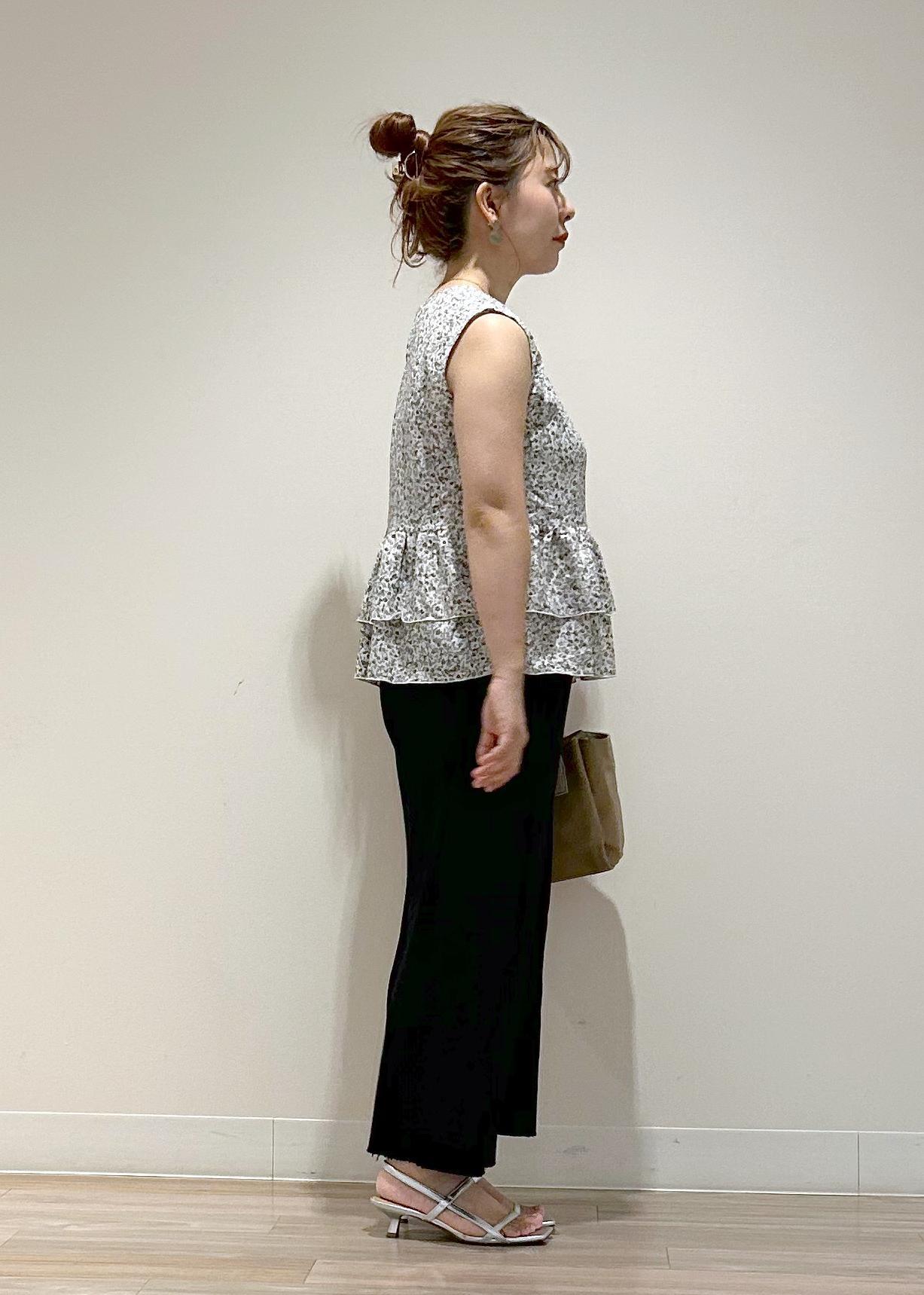 ノースリーブに抵抗がある方は、ショート丈の羽織を合わせていただくと、バランスが綺麗なのでおすすめです。
