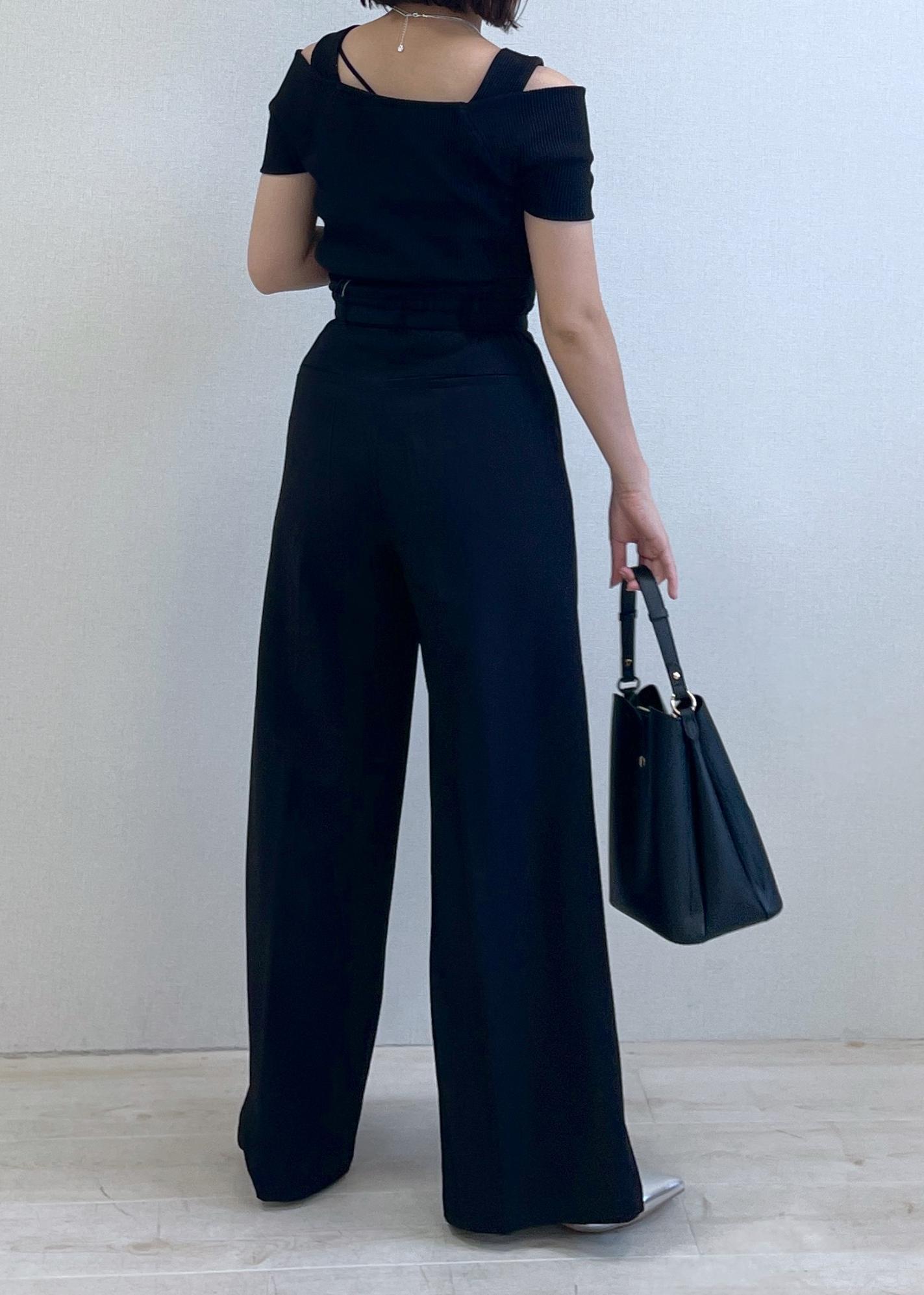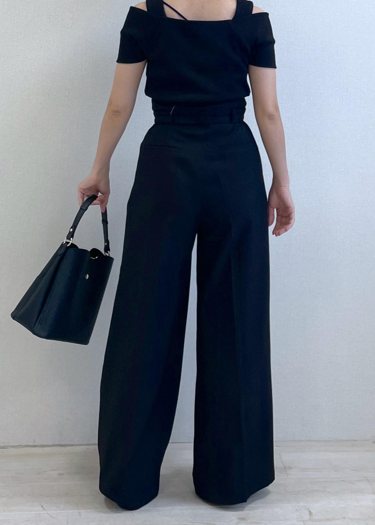 VIS【新色追加】【防シワ/接触冷感】ベルトディテールタックワイドスラックスパンツブラック / S¥6,589レビュー150cmでSサイズ着用で、丈感はヒールを履いて下に着かないくらいです。