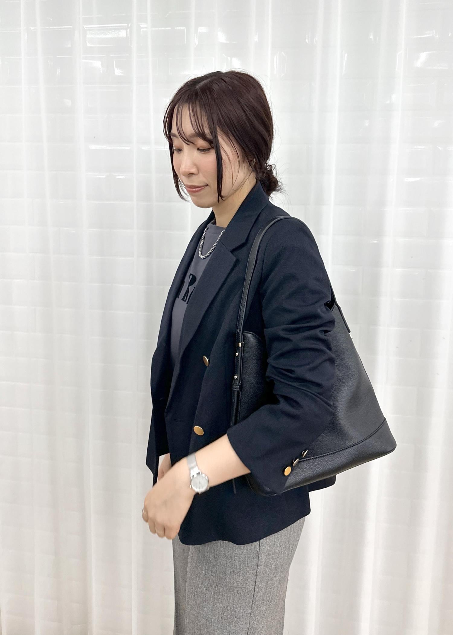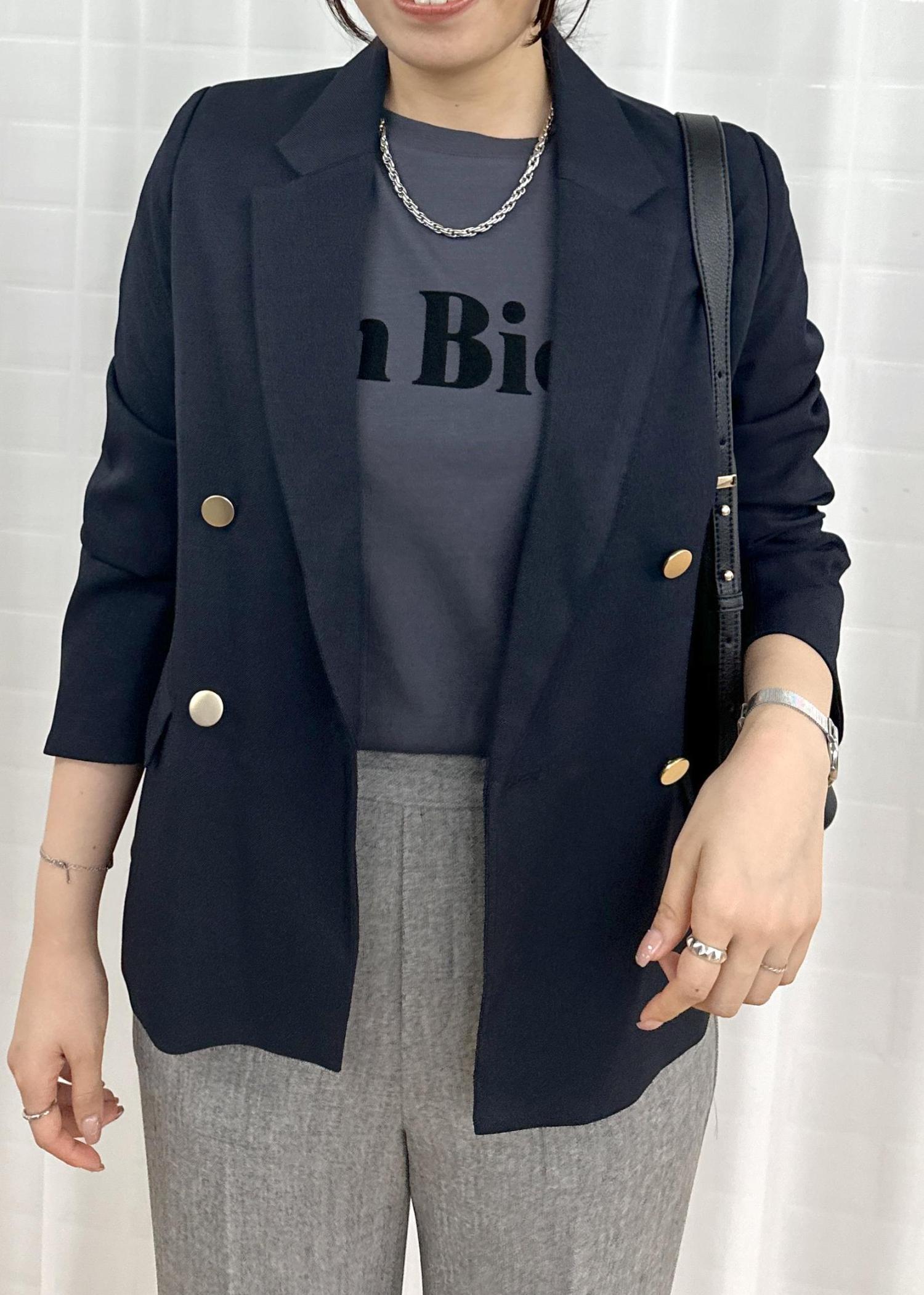 ジャケットは普段Lサイズを着用することが多いので、Mサイズだとジャストサイズできちんと感が出ます。