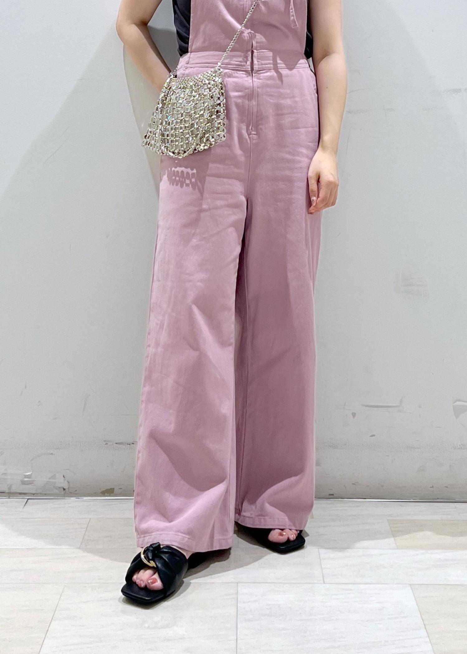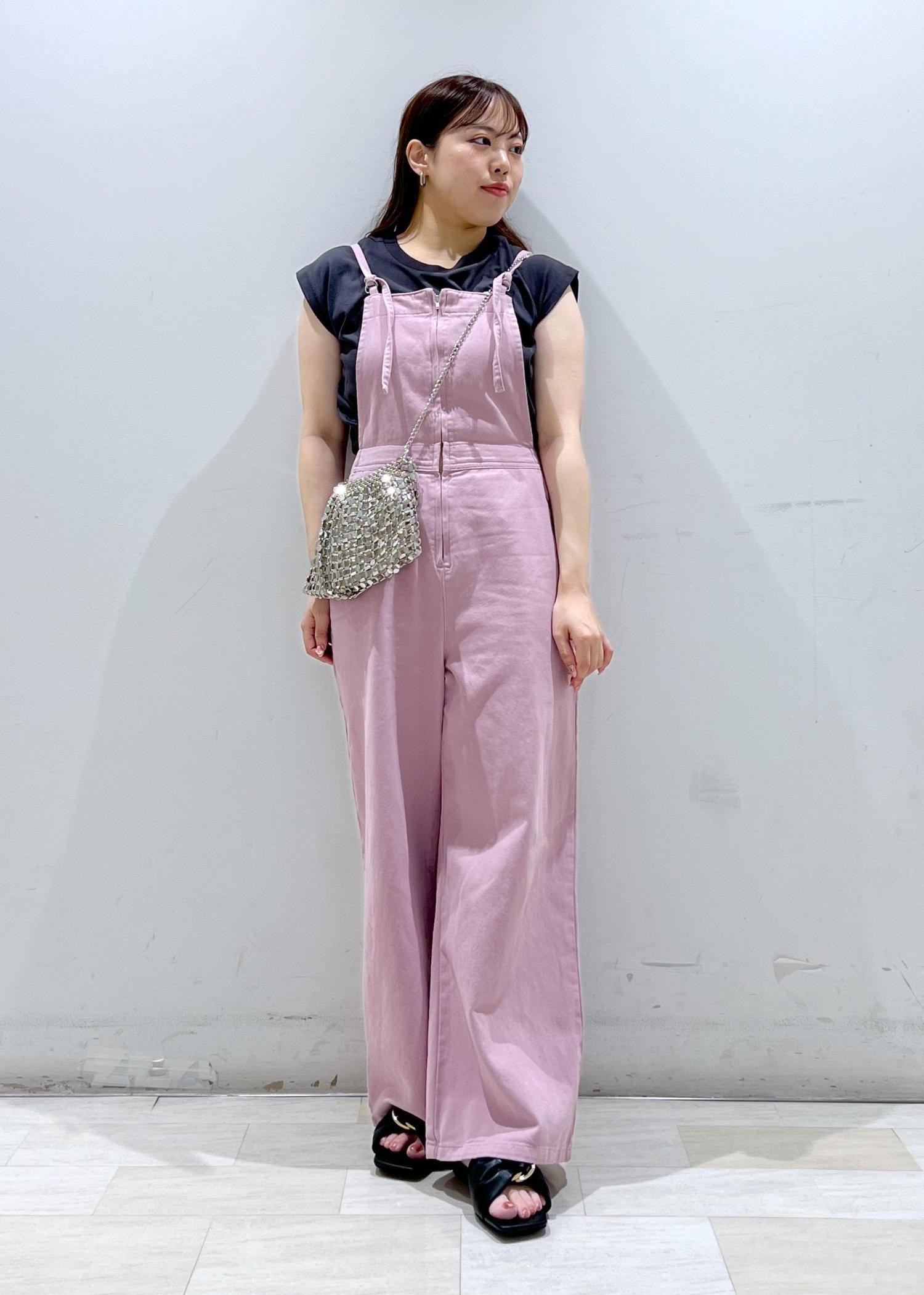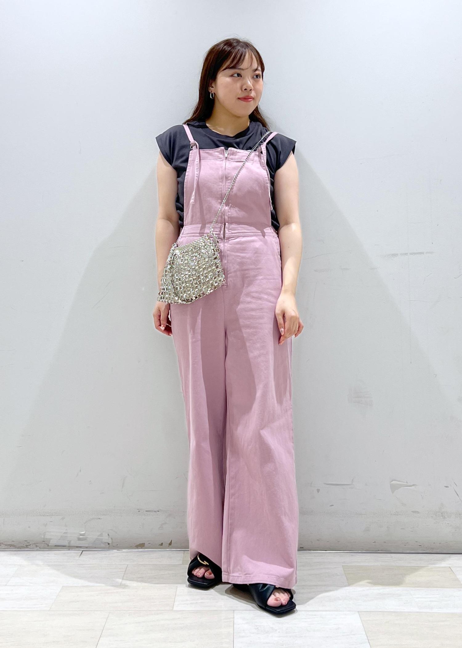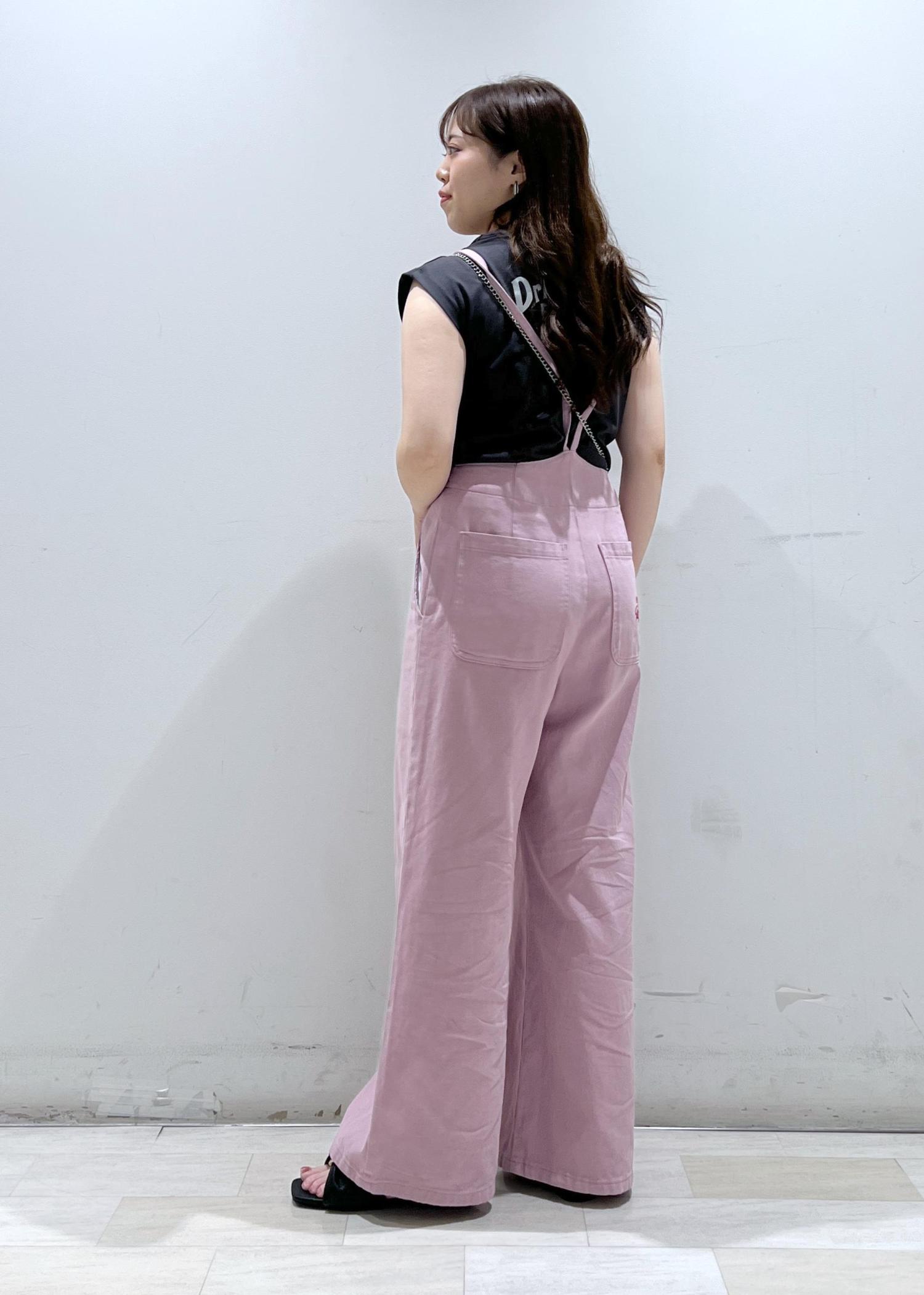 ピンクカラーがとても目をひく可愛いデニムオールインワンです!