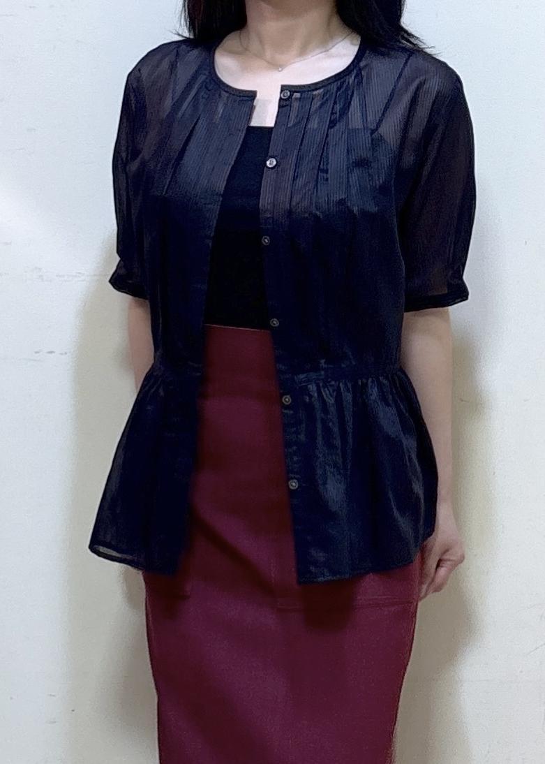 着丈はヒップにかかるほどで後ろからのシルエットもフェミニンさが素敵なブラウスです。 -