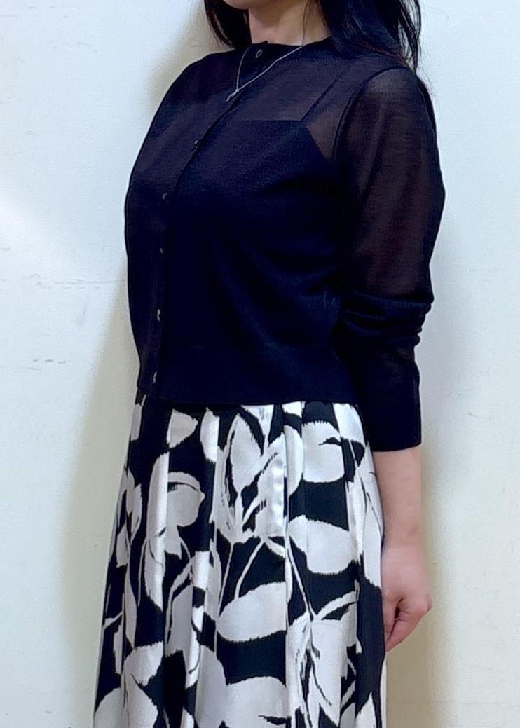 ROPÉ【洗える】LEVITAクルーネックシアーカーディガンブラック / F¥13,860レビュー身長152cm Fサイズ着用