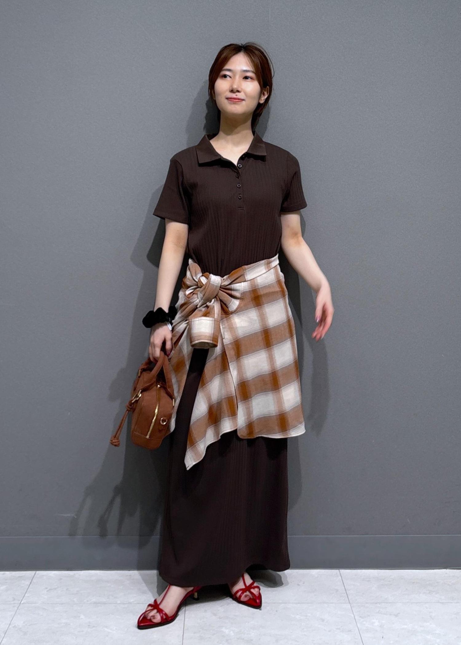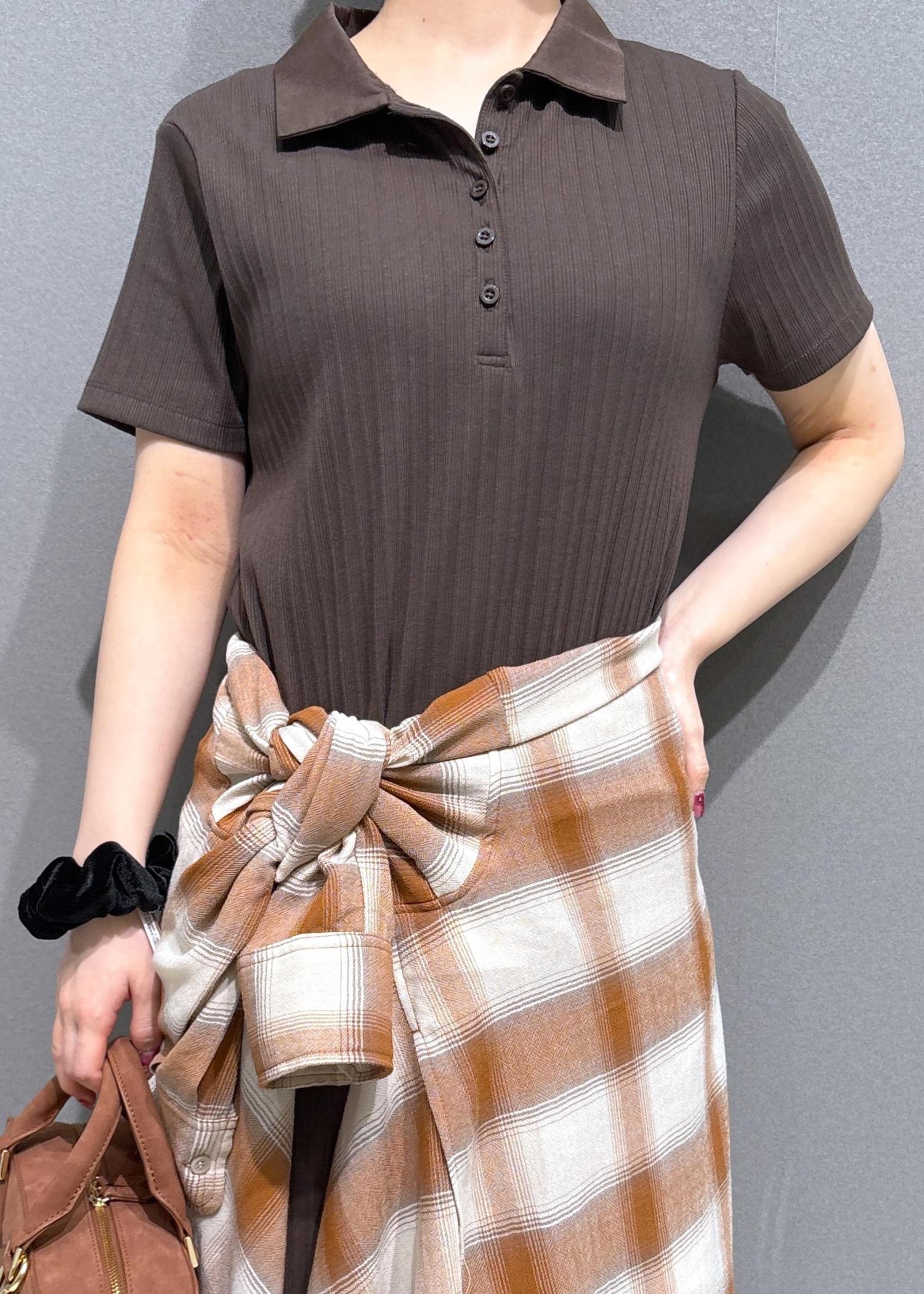 VISポロ衿ランダムリブワンピースダークブラウン / F¥4,612レビュー150cmでくるぶしが隠れる丈でした。