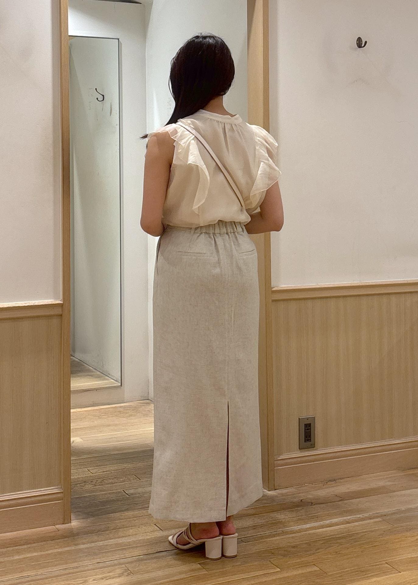 身頃はスッキリとしていて、ボトムスはスカート/パンツどちらでも合わせやすくなっています。 -