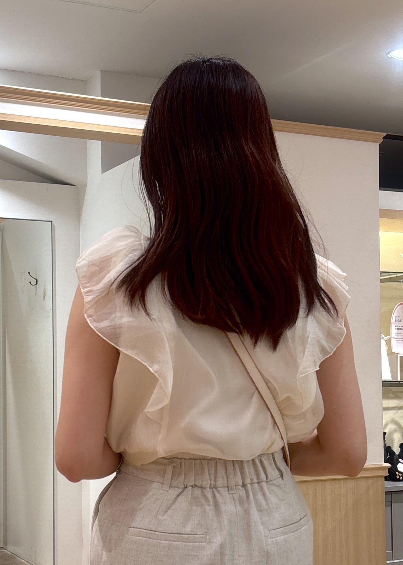 VIS【店頭人気】主役級!華やぎシアーシャイニーボウタイフリルブラウス【前後2WAY】【洗える】キナリ / F¥5,489レビュー肩のフリルが華やかに見えるブラウス。