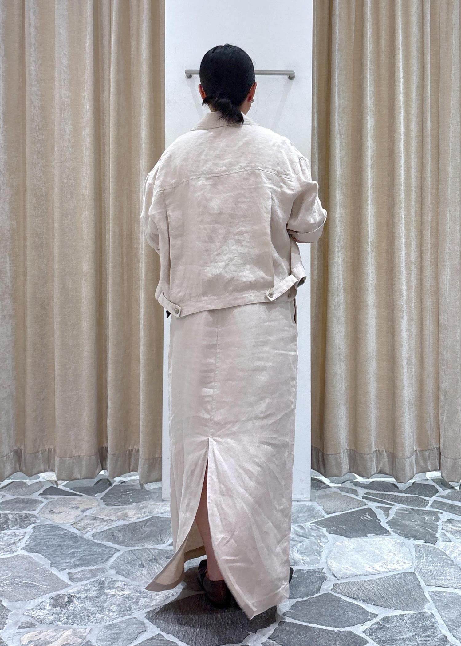 SALON adam et ropéリネンツイルブルゾンベージュ /¥23,760レビュー身頃、アームともにかなりゆったりめのつくりですが、クロップド丈と深めのVネックですっきり着られます。