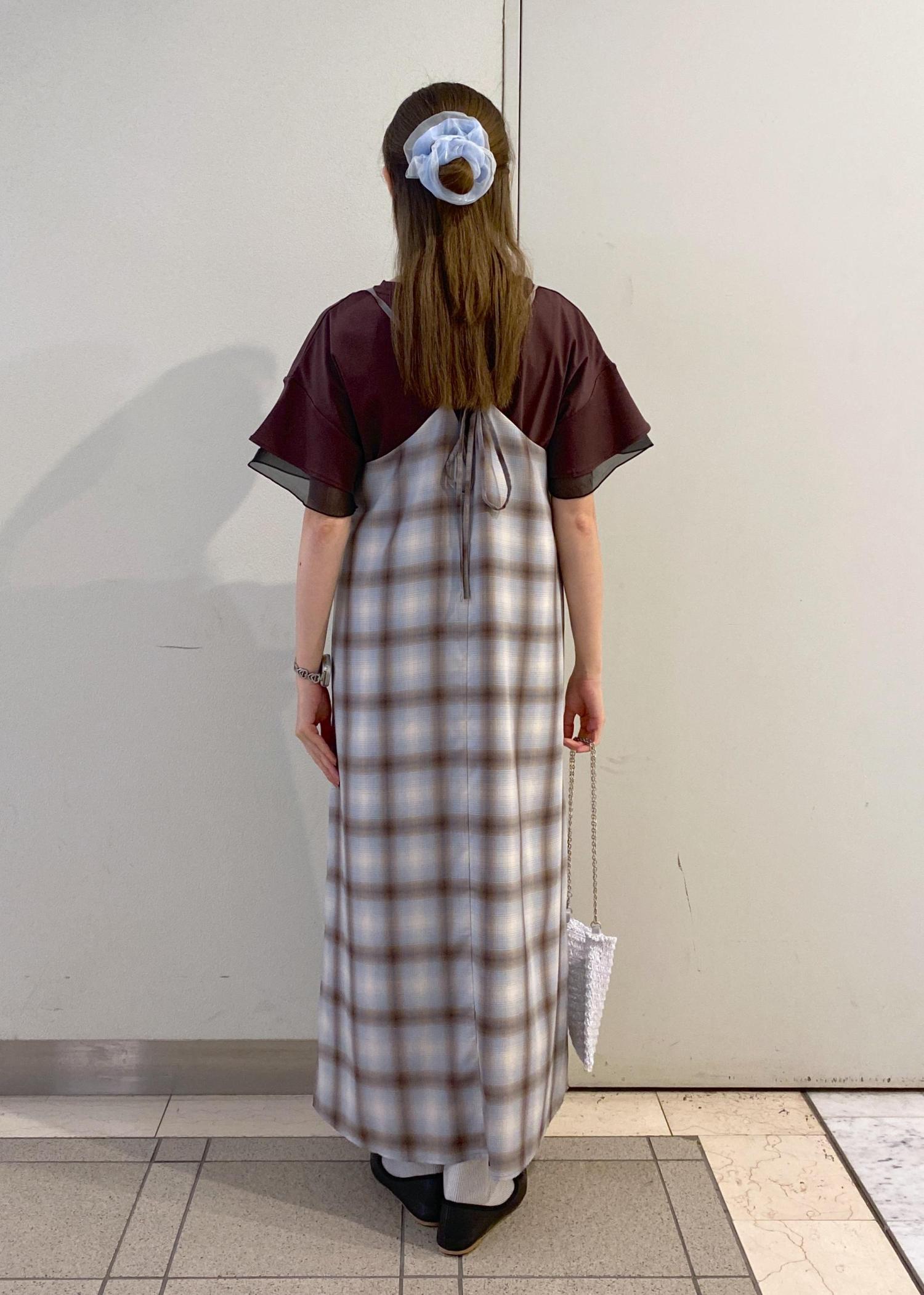 キャミワンピースは形がシンプルなのでデザイン性のあるトップスとの相性◎