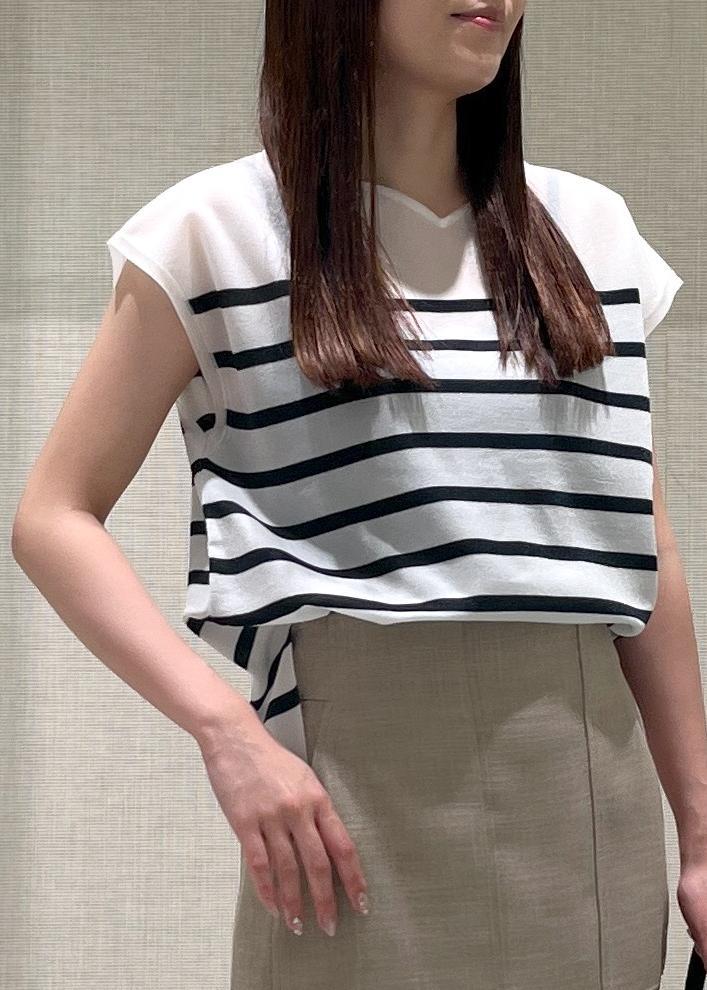 涼やかなシアー感が上品な夏に映えるライトニットです。