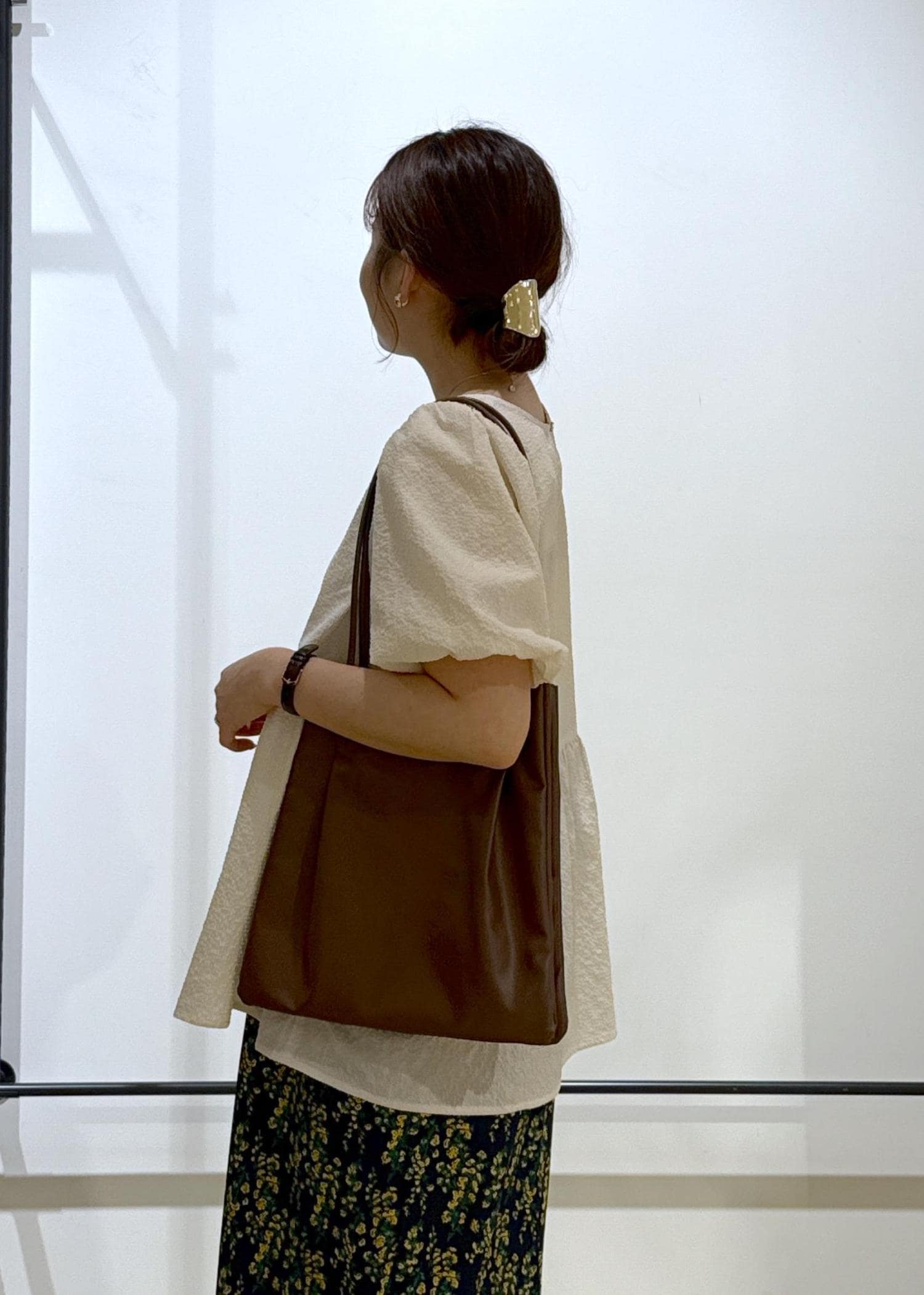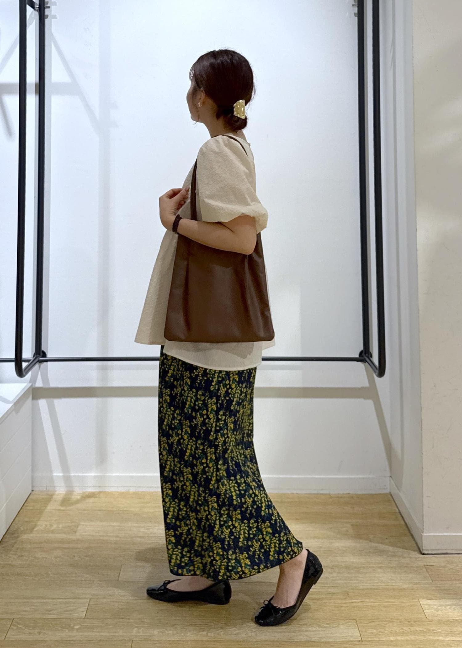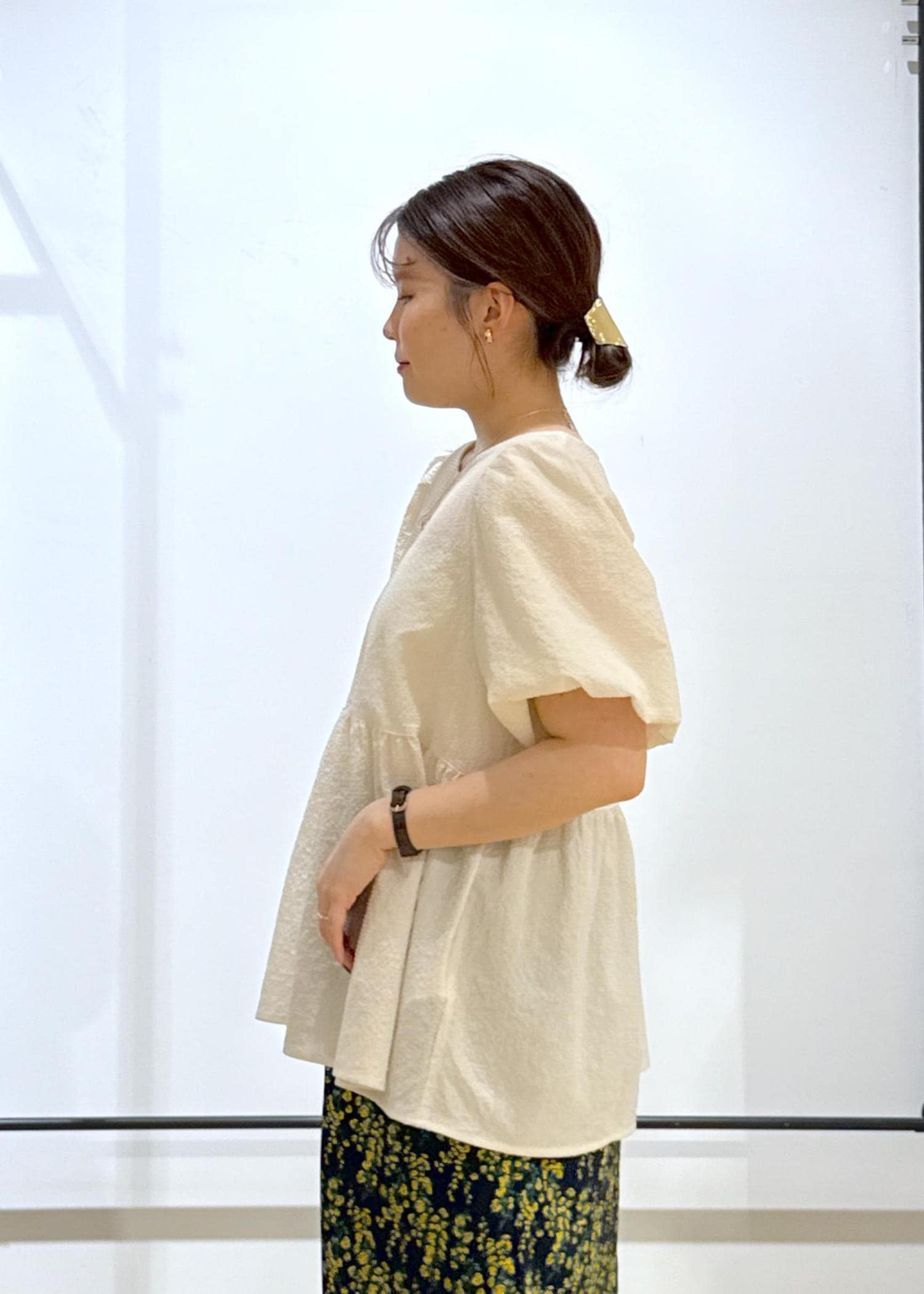 ペプラムブラウス×花柄スカート