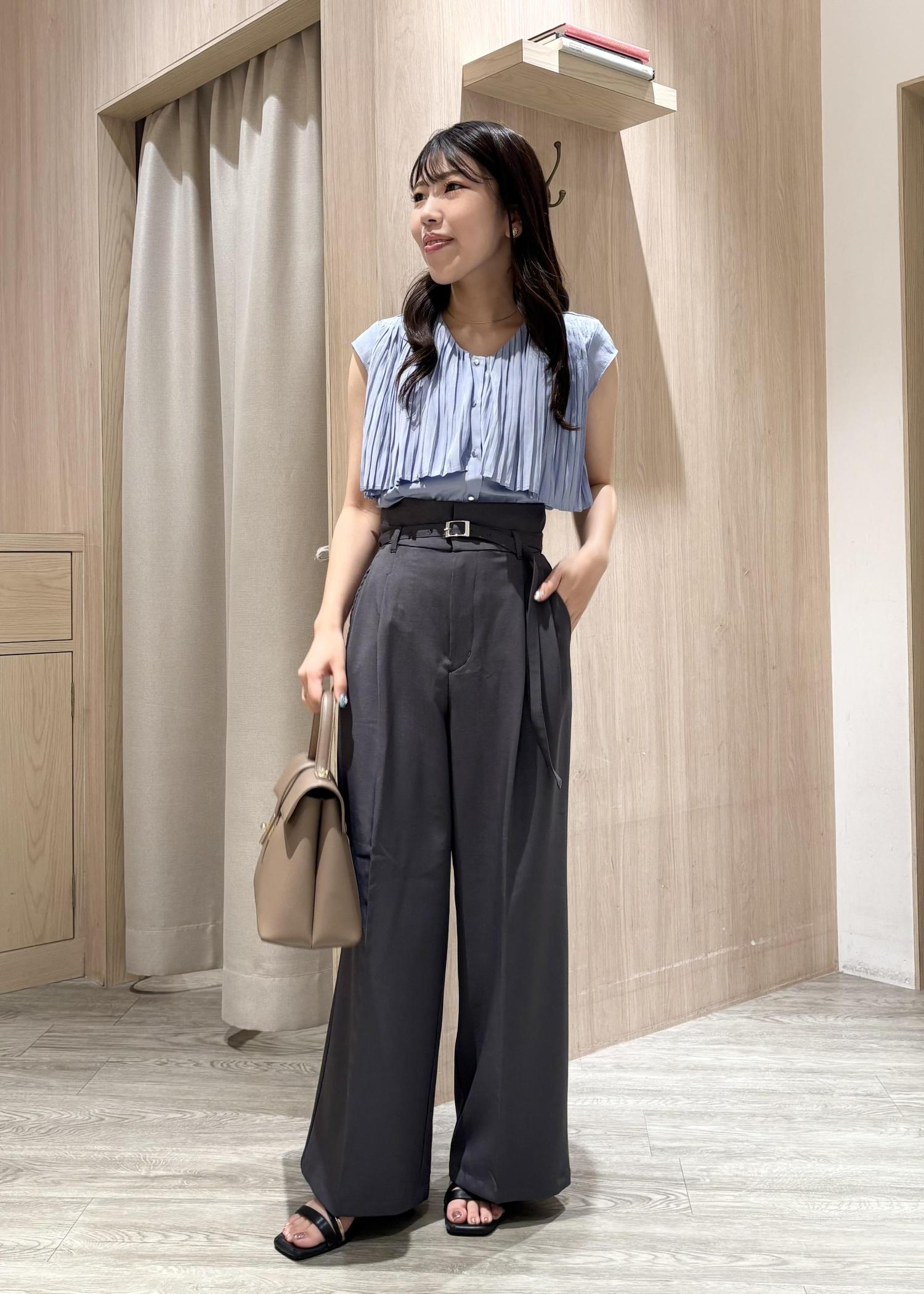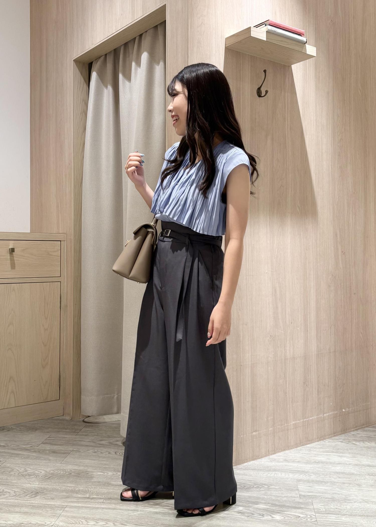 VIS【新色追加】【防シワ/接触冷感】ベルトディテールタックワイドスラックスパンツチャコール / S¥6,589レビュー身長152㎝でSサイズを着用しましたが、少し床につく長さだったため、ヒールや厚底を合わせることをオススメします。