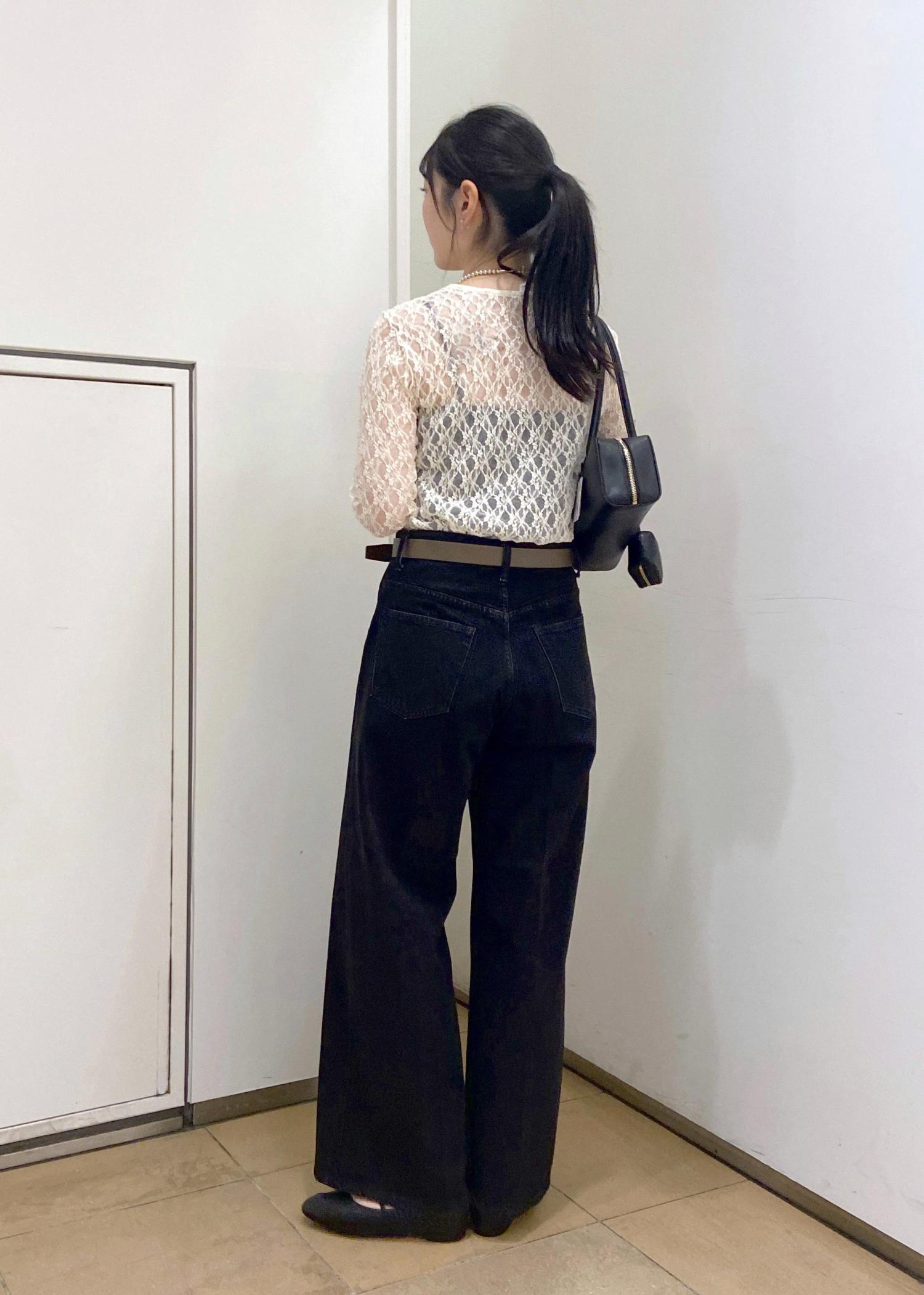ウエストはややゆるく、ウエストを落として履くと今年らしいスタイルに。