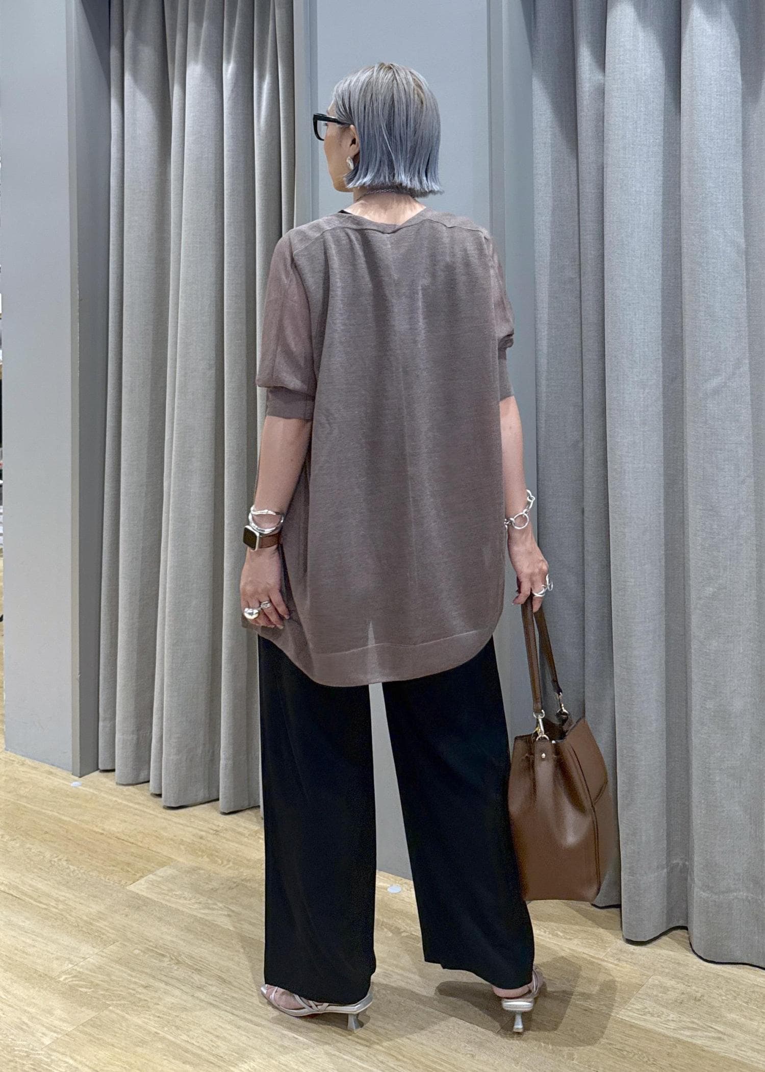 体のラインが出ないフワッとしたシルエットで、