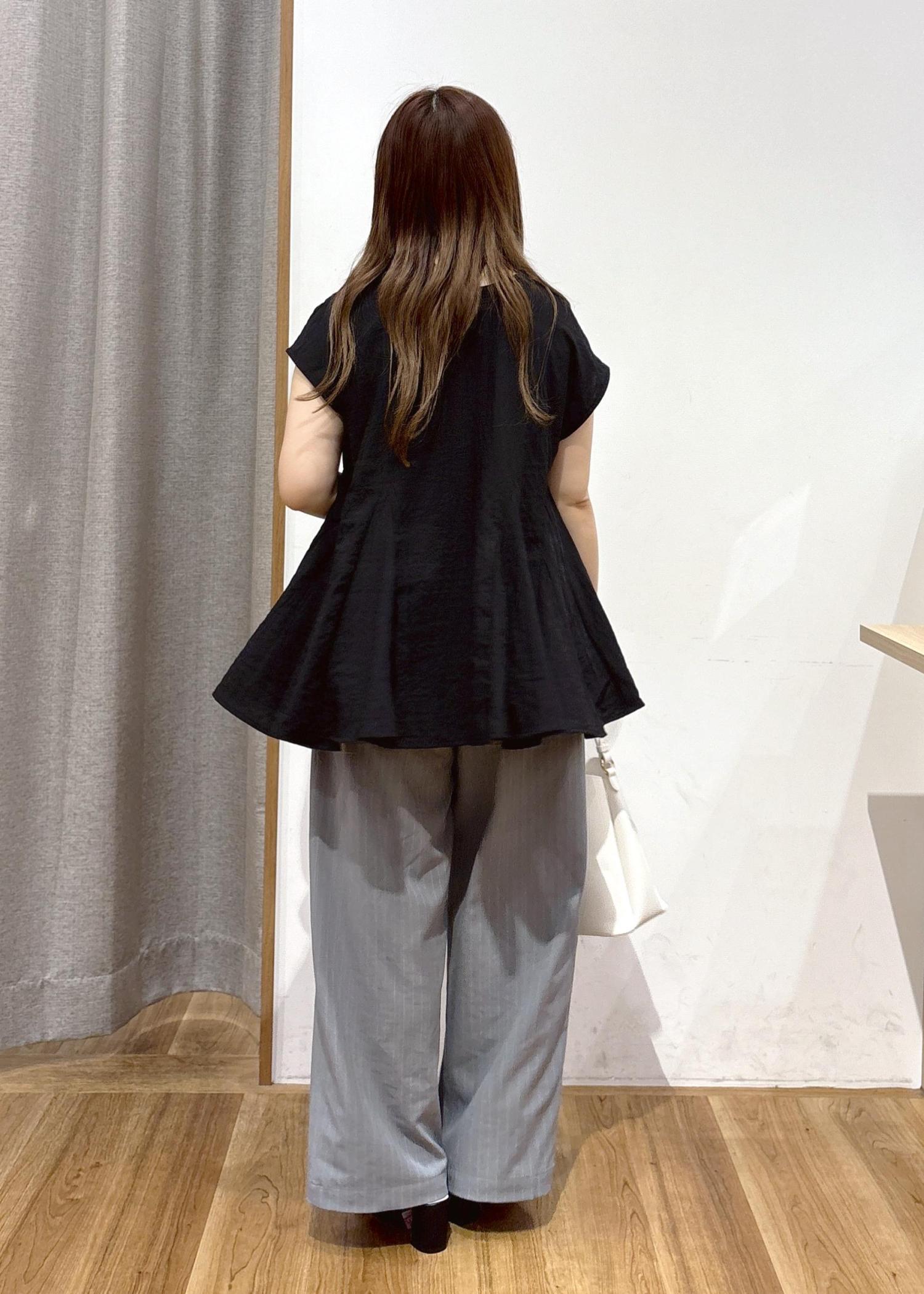 お仕事でもプライベートでも使いやすい黒のブラウス+やわらか素材とシルエットが美しいブラウスを組み合わせてみました!