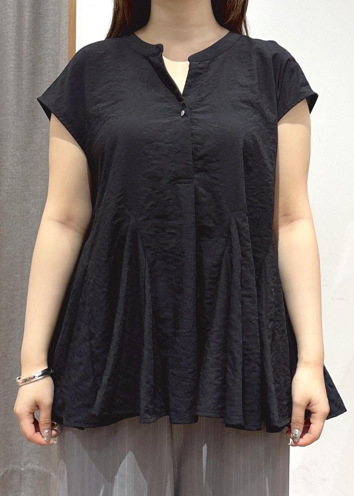 アウトレットVIS【防シワ/洗える】スキッパーフレアブラウスブラック / F¥3,293レビュー【着用感】