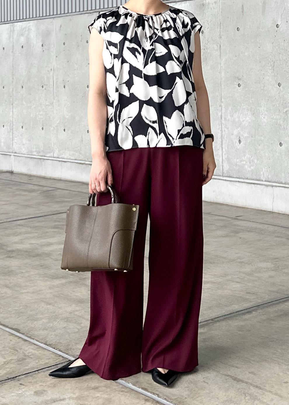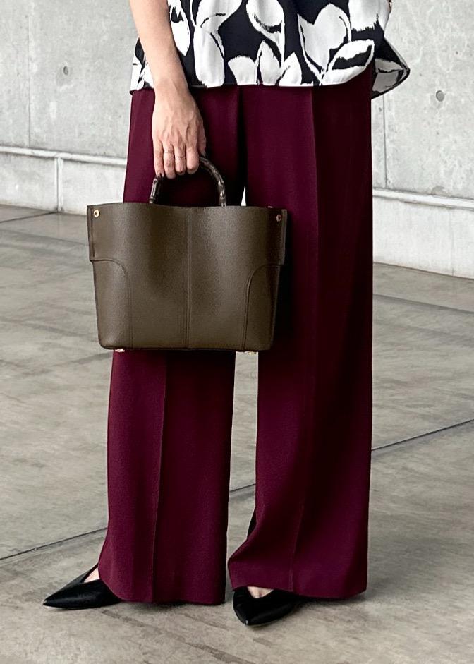 ROPÉ【洗える・カセット服】ライトトリアセイージーワイドパンツ/お仕事・通勤・セットアップ対応ワイン / 38¥25,300レビュー162センチ 普段ボトム38、40サイズ