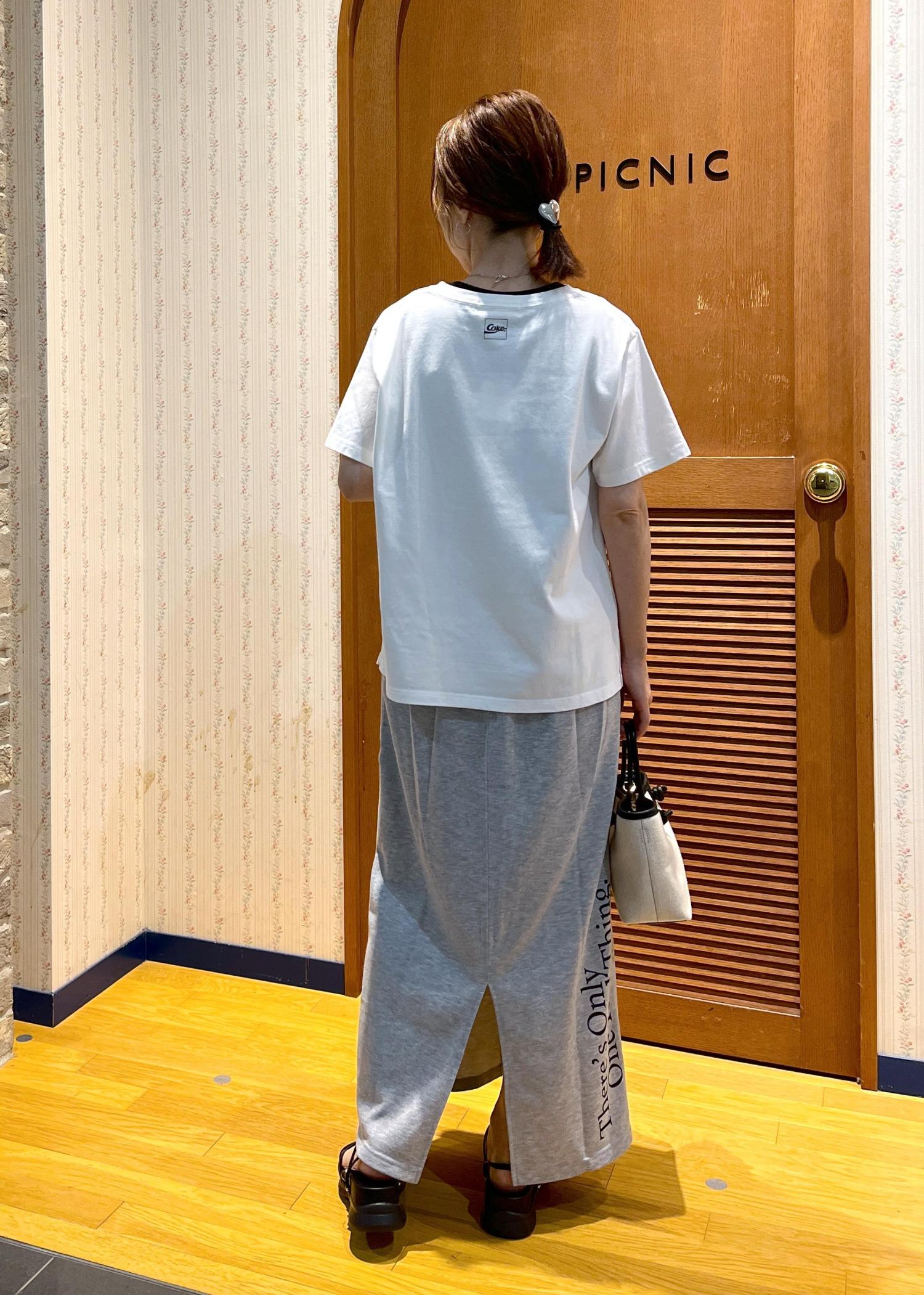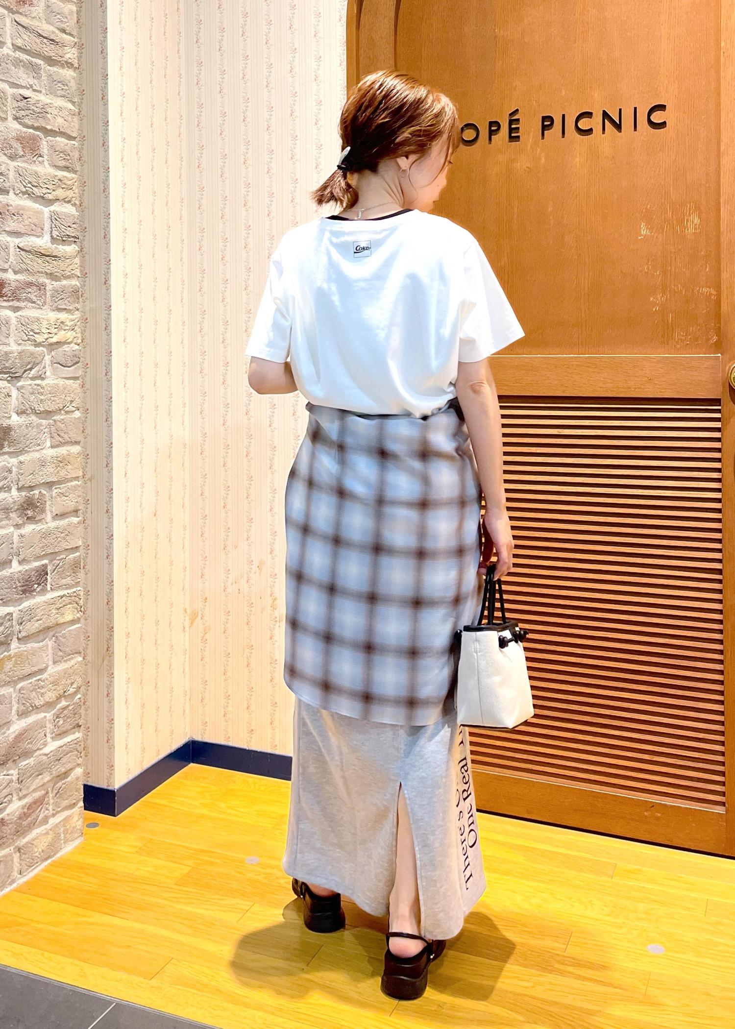 Tシャツにスカートを合わせたカジュアルコーデです。