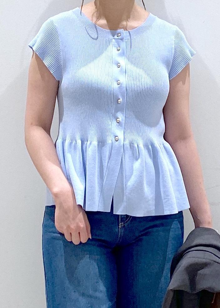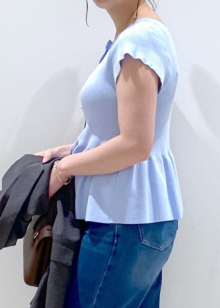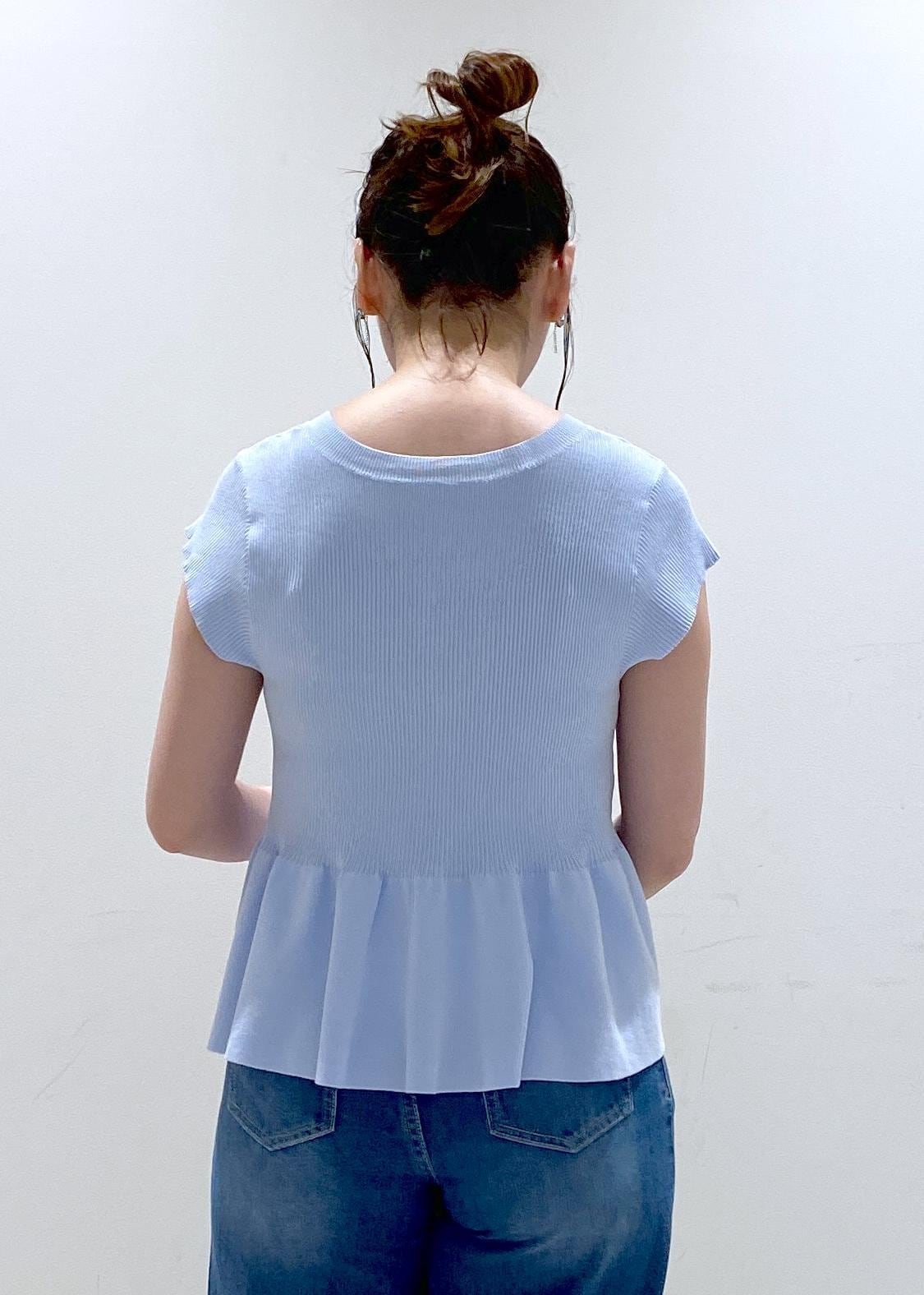 VIS【アンチピリング/洗える】美SMARTショートスリーブペプラムニットサックス / F¥5,489レビュー人気のペプラムニットにショートスリーブバージョンが
