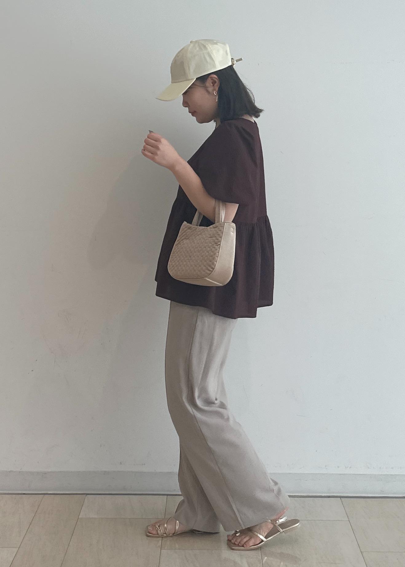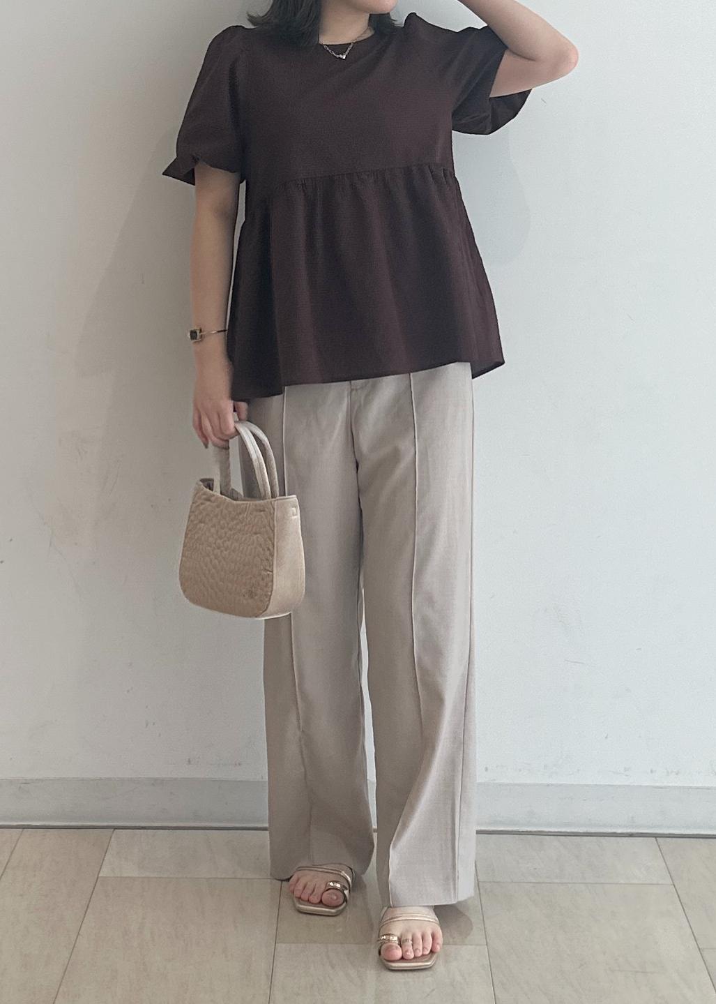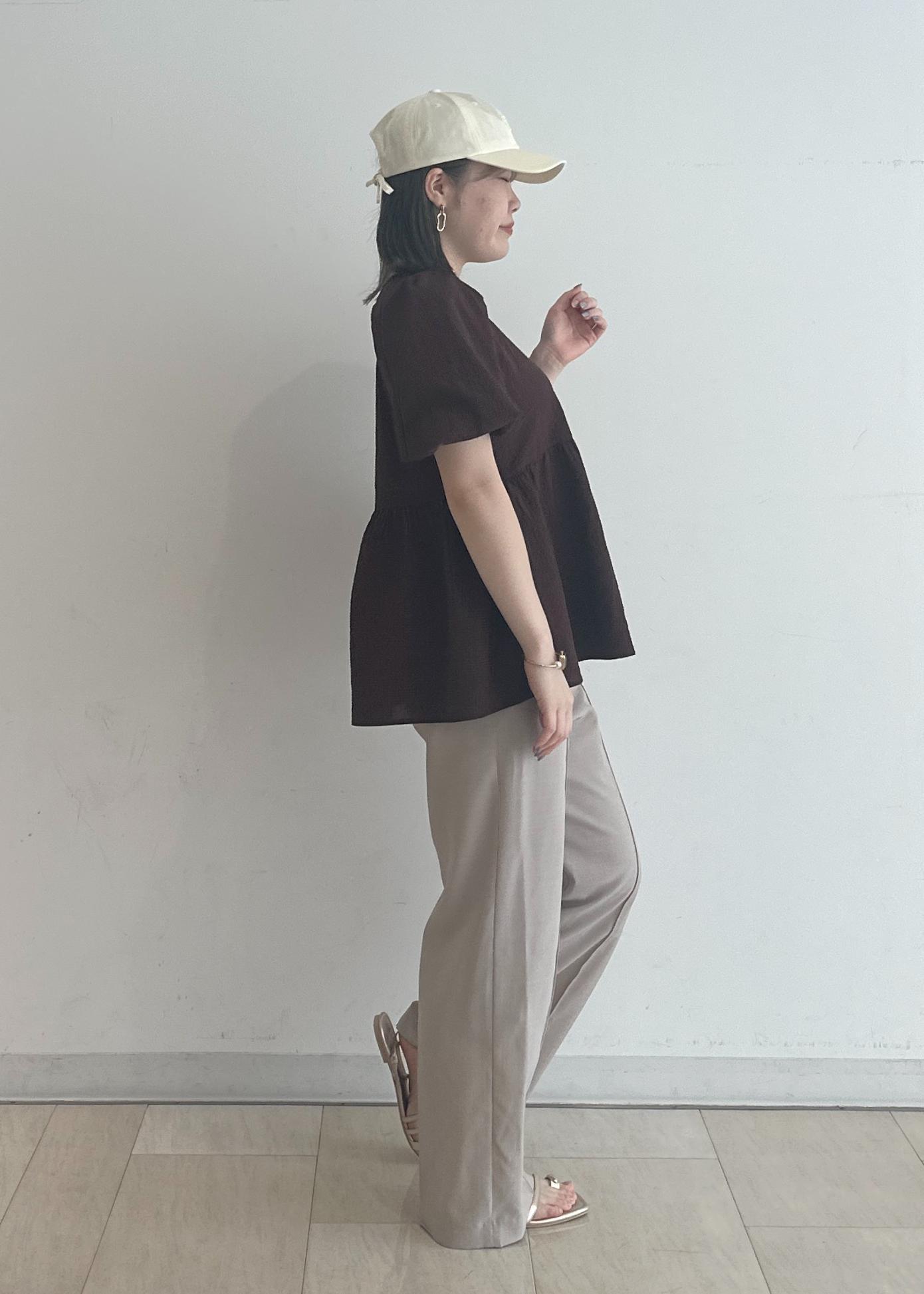 ペプラムでお腹周りをカバーしてくれるのでカフェで沢山食べてもぽっこりお腹を隠してくれるコーディネートです!
