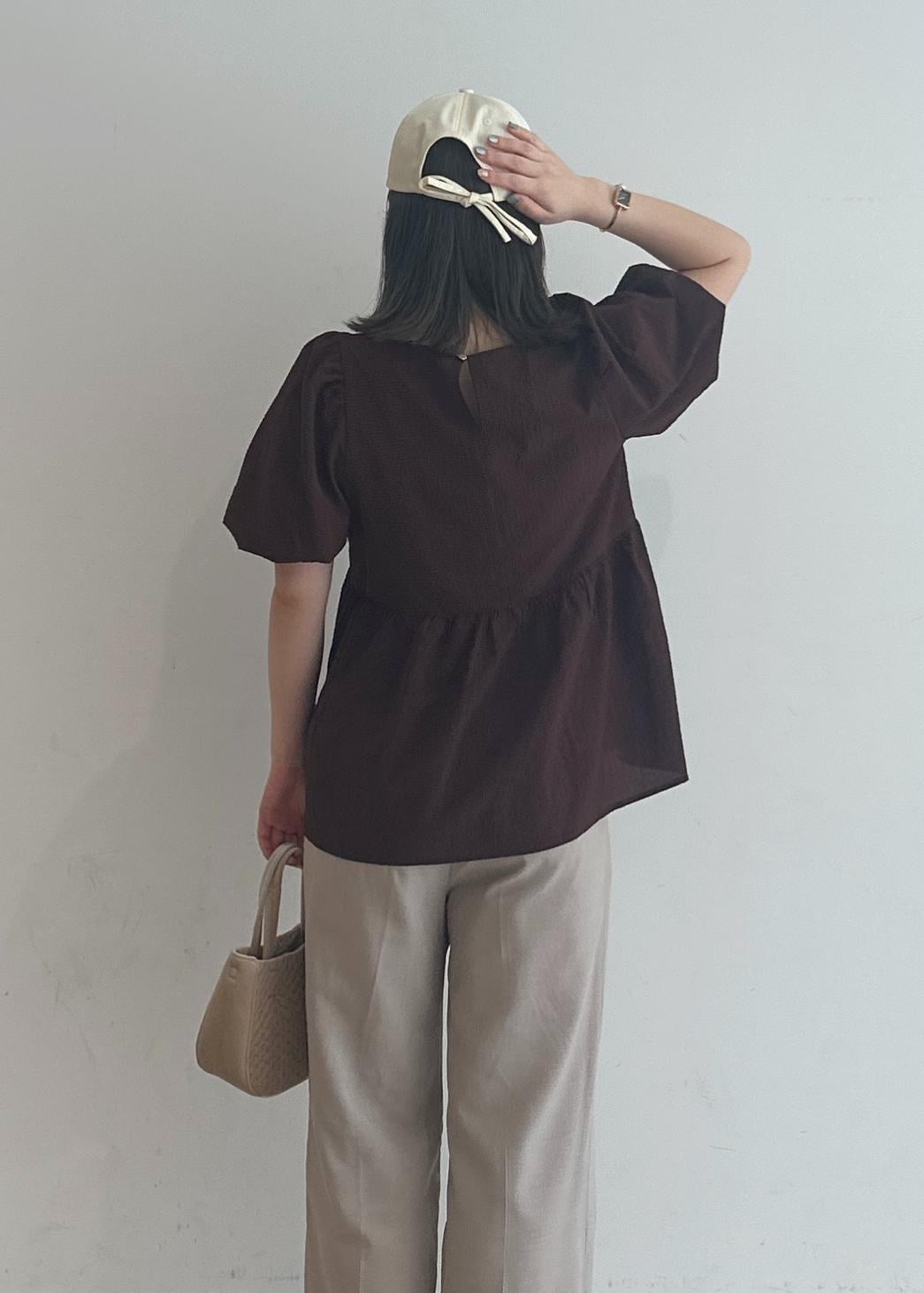 ROPÉ PICNICバルーンペプラムブラウスダークブラウン / 38¥4,499レビューポコポコした素材感がかわいいトップスです!