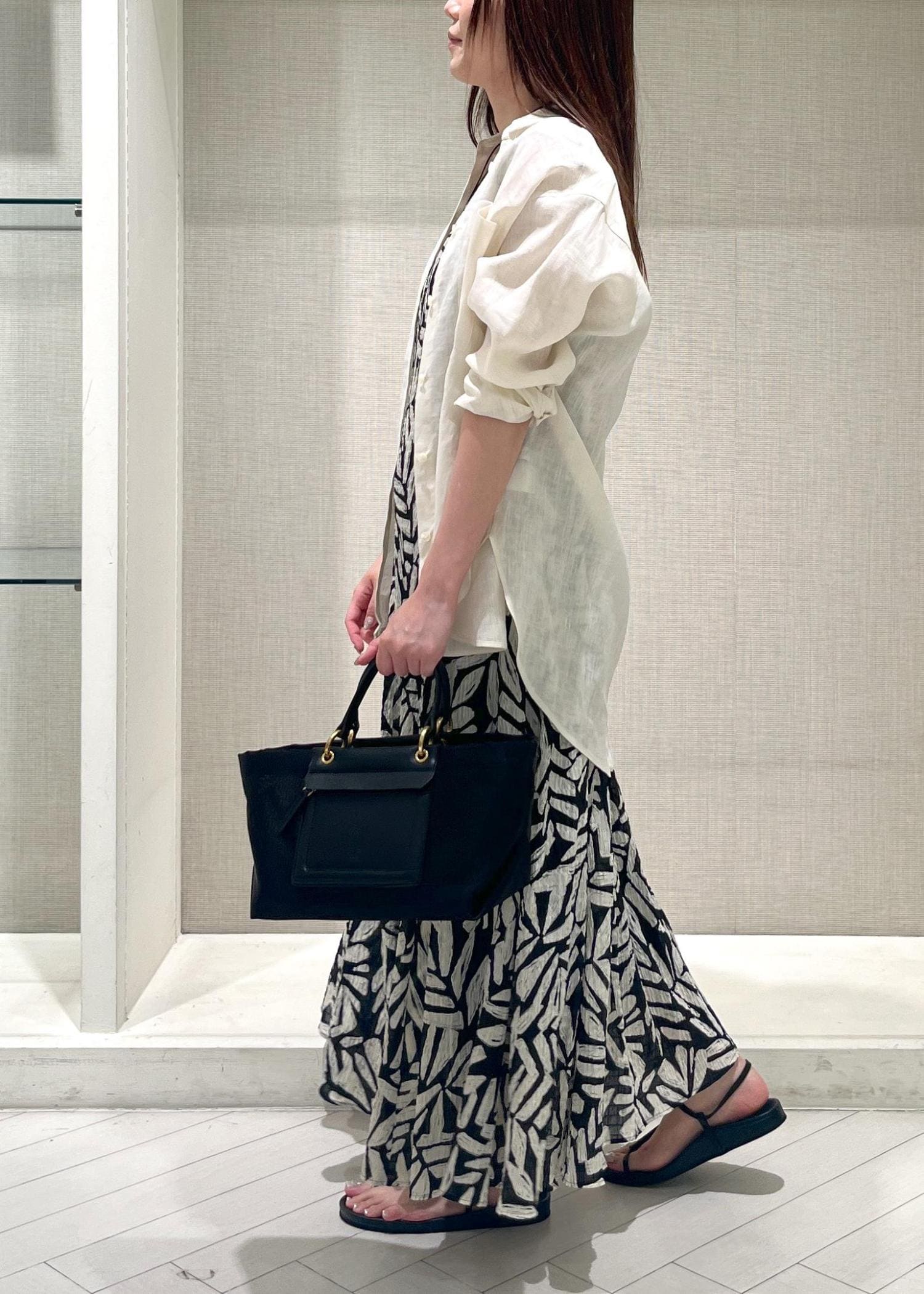 洗えてシワになりにくく、清涼感のある素材感なので夏の季節におすすめのアイテムです。