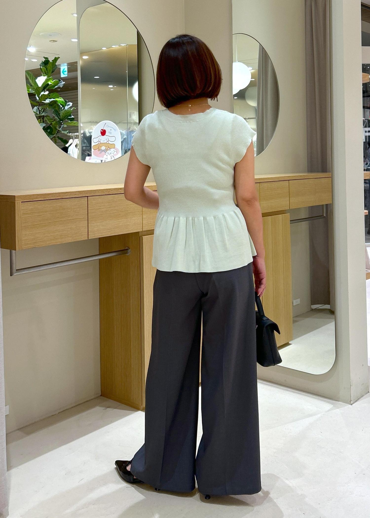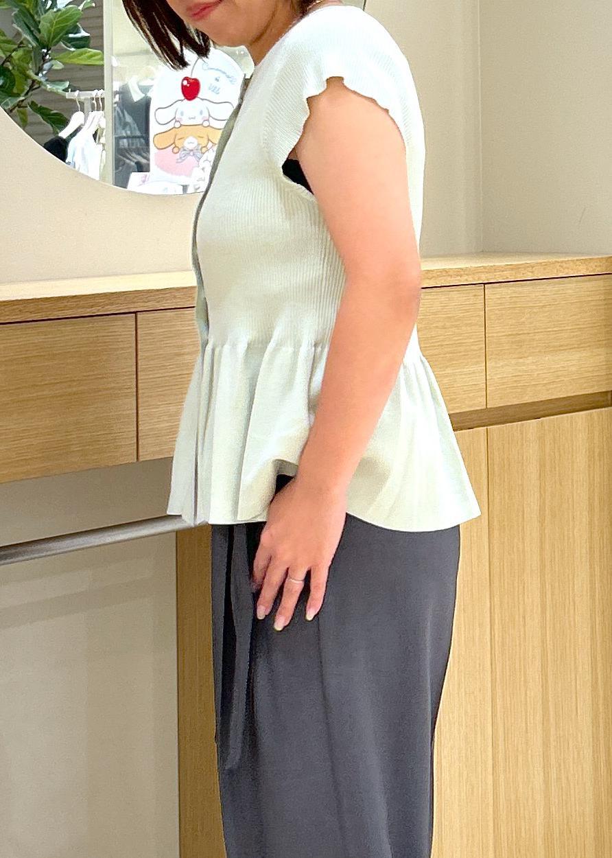 細見えするリブ編みと、ペプラムデザインで腰まわりもカバーしてくれるので、メリハリのあるシルエットです。 -
