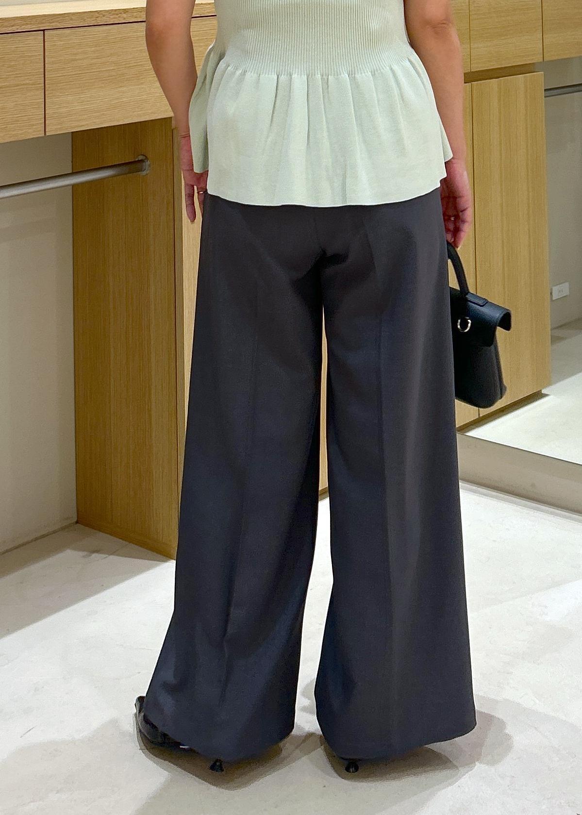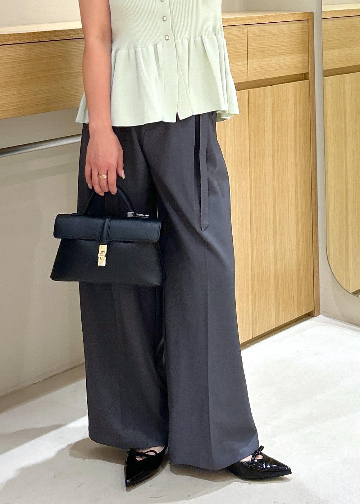 綺麗見えするチャコールのボトムを合わせて、