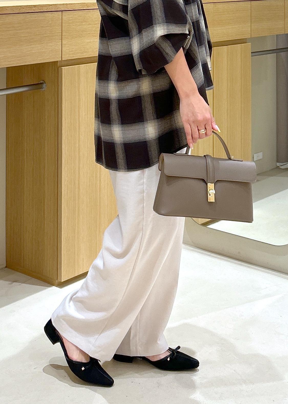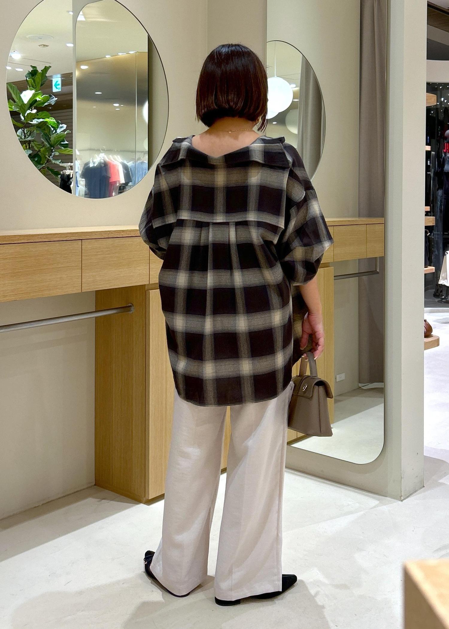 落ち感のある素材でゆるっとリラックス感のある着こなしにしました。