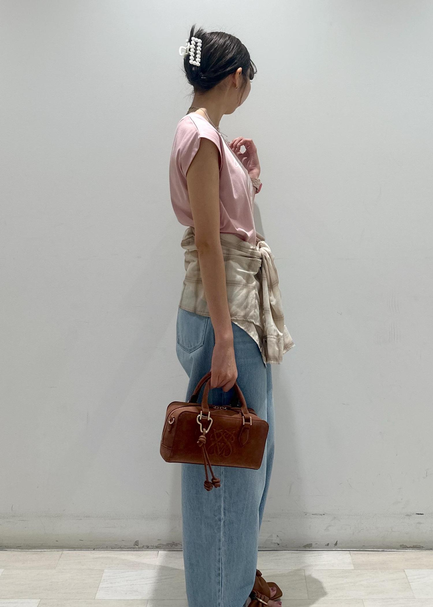 肩を落とし裾に向かってボクシーな形状で、暑い夏にぴったりの肌離れするサイズ感。