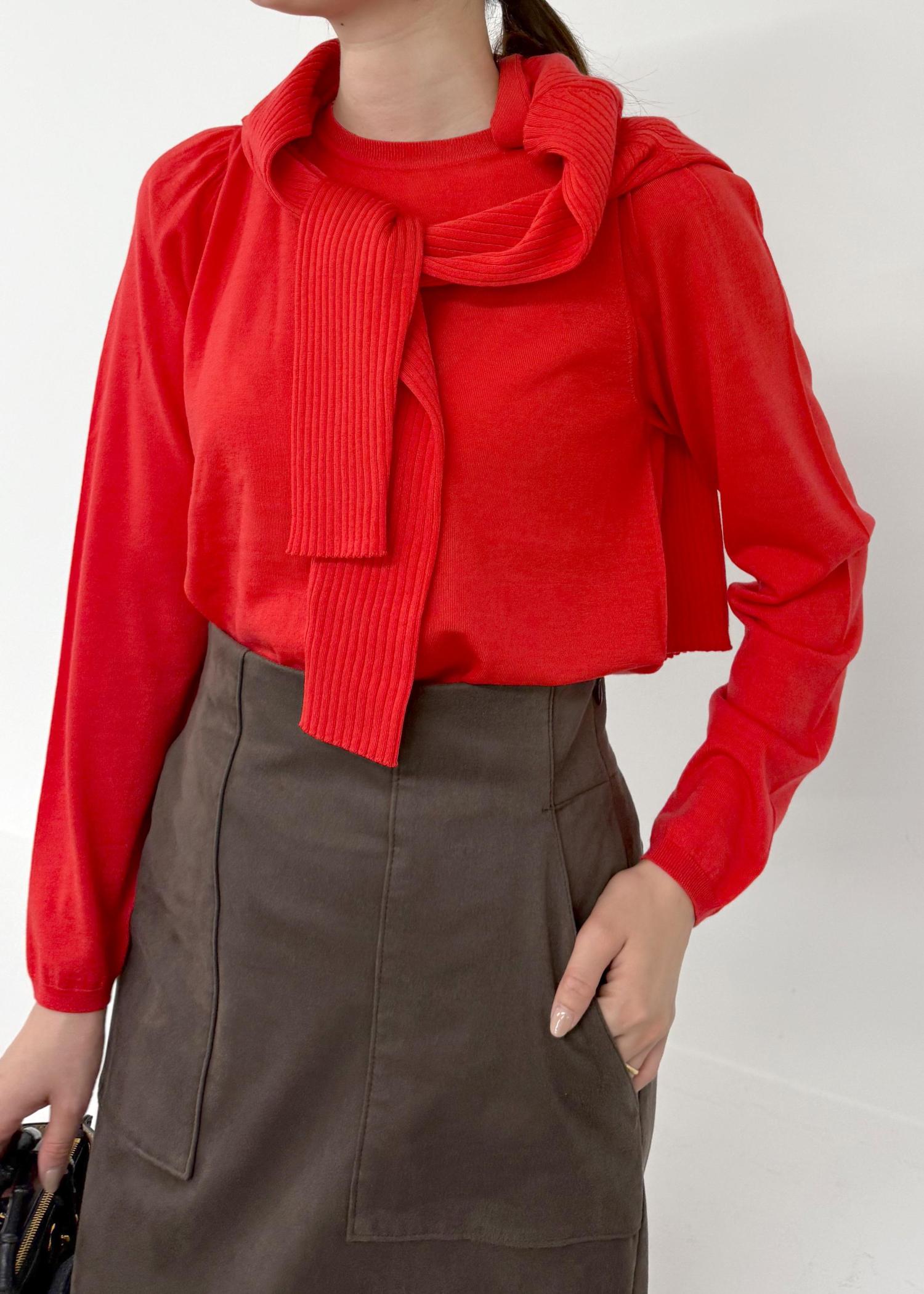 袖ギャザークルーネックニットプルオーバー/イージーケア
