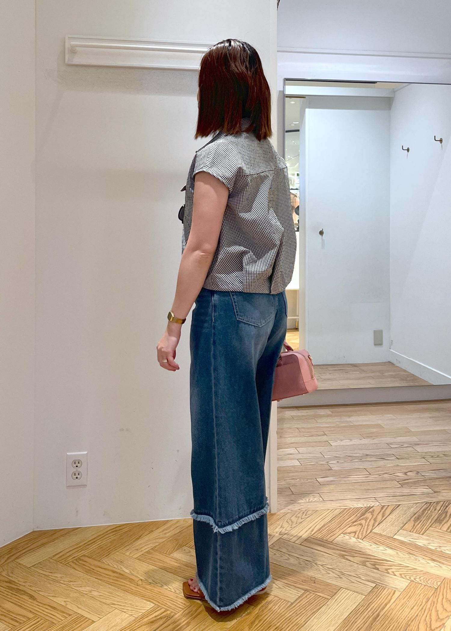 低身長の方には、バランスがとりやすく、着回ししやすい丈感でおすすめです!