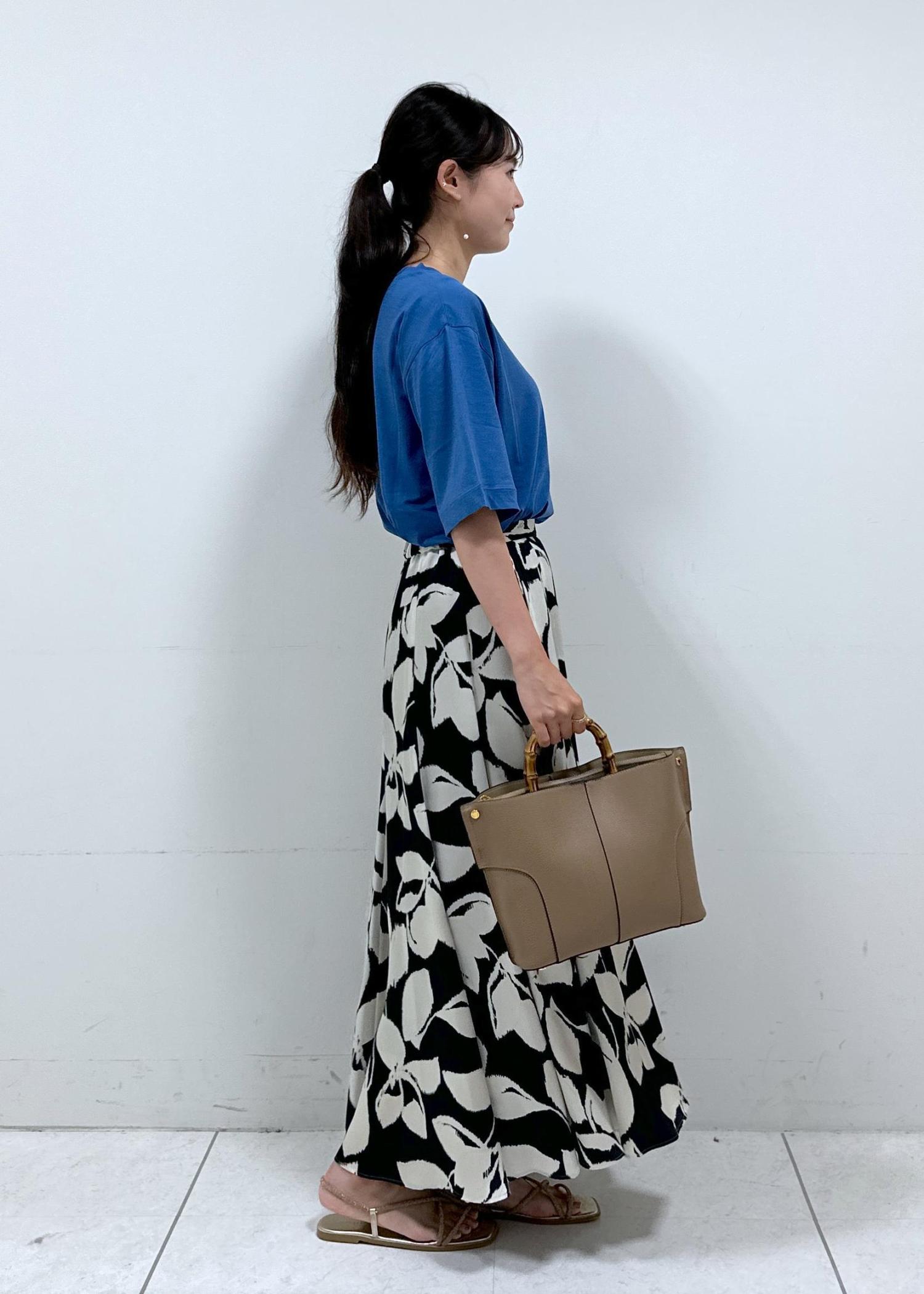 着丈は足首がしっかり見える長さなので、フラットシューズやビーチサンダルでも気軽に合わせていただけます◎