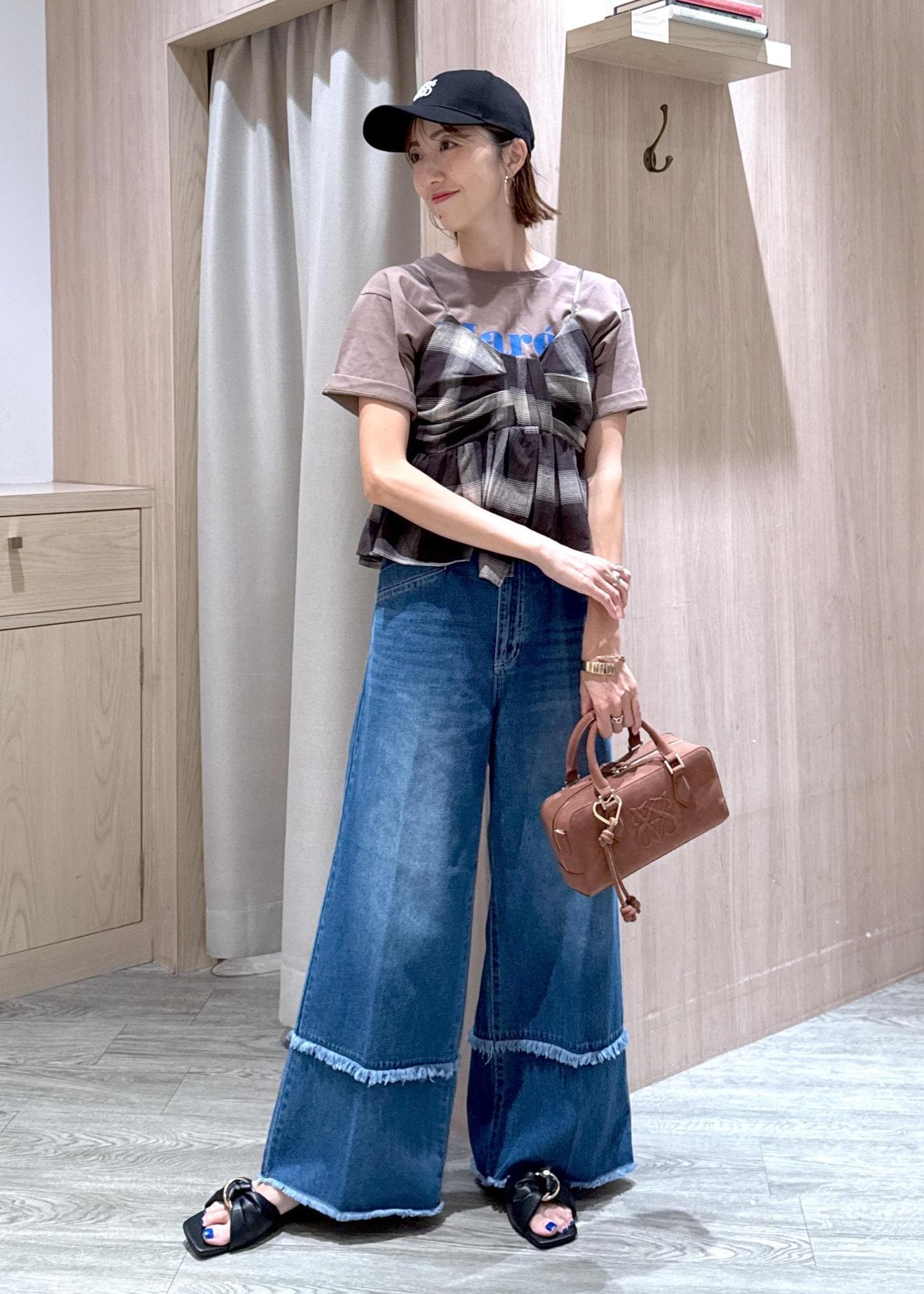 Tシャツは白だと夏っぽくなるのでブラウンで秋を意識しました♪