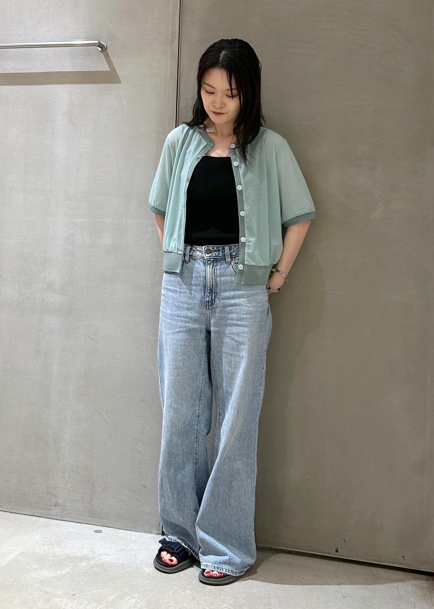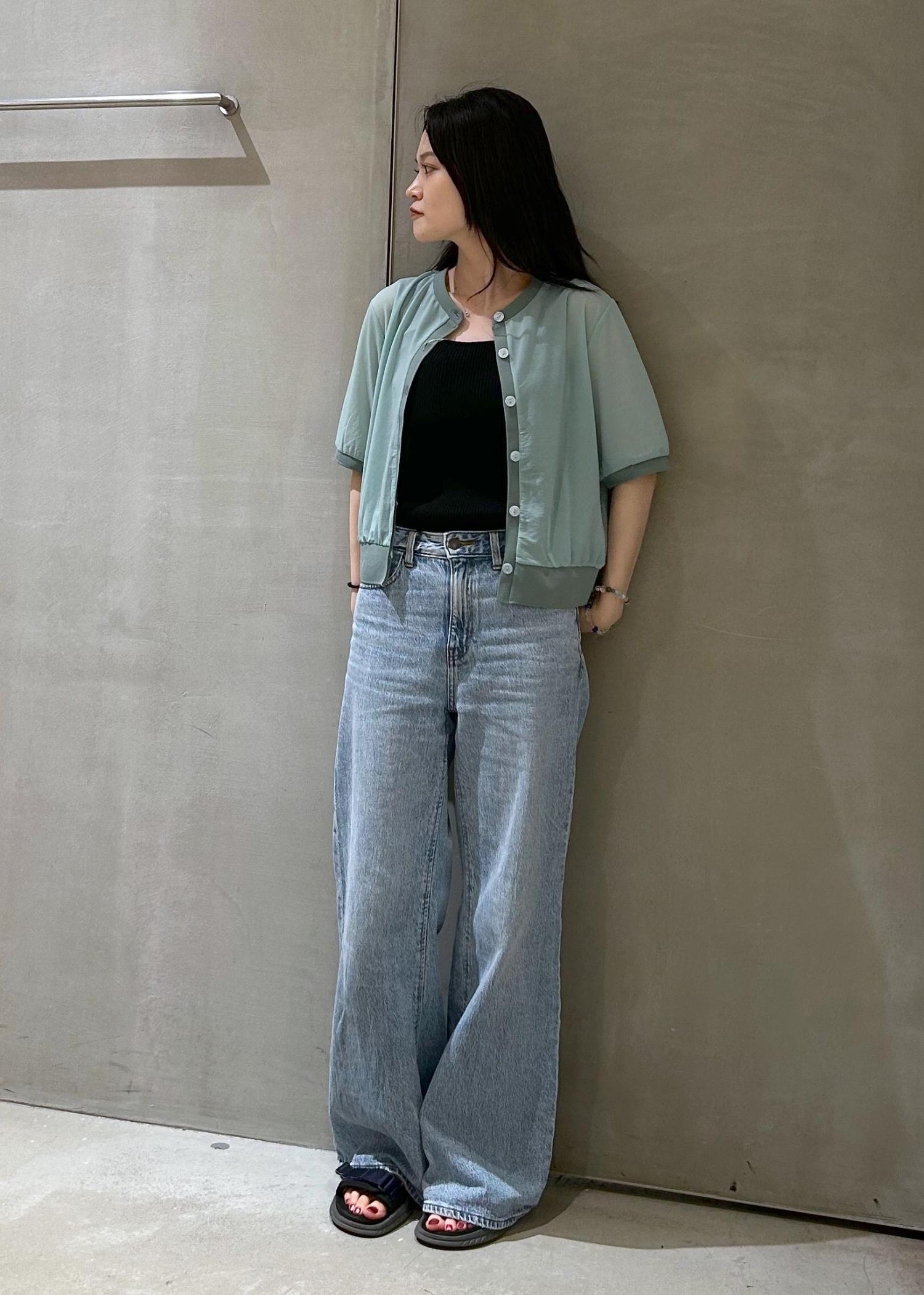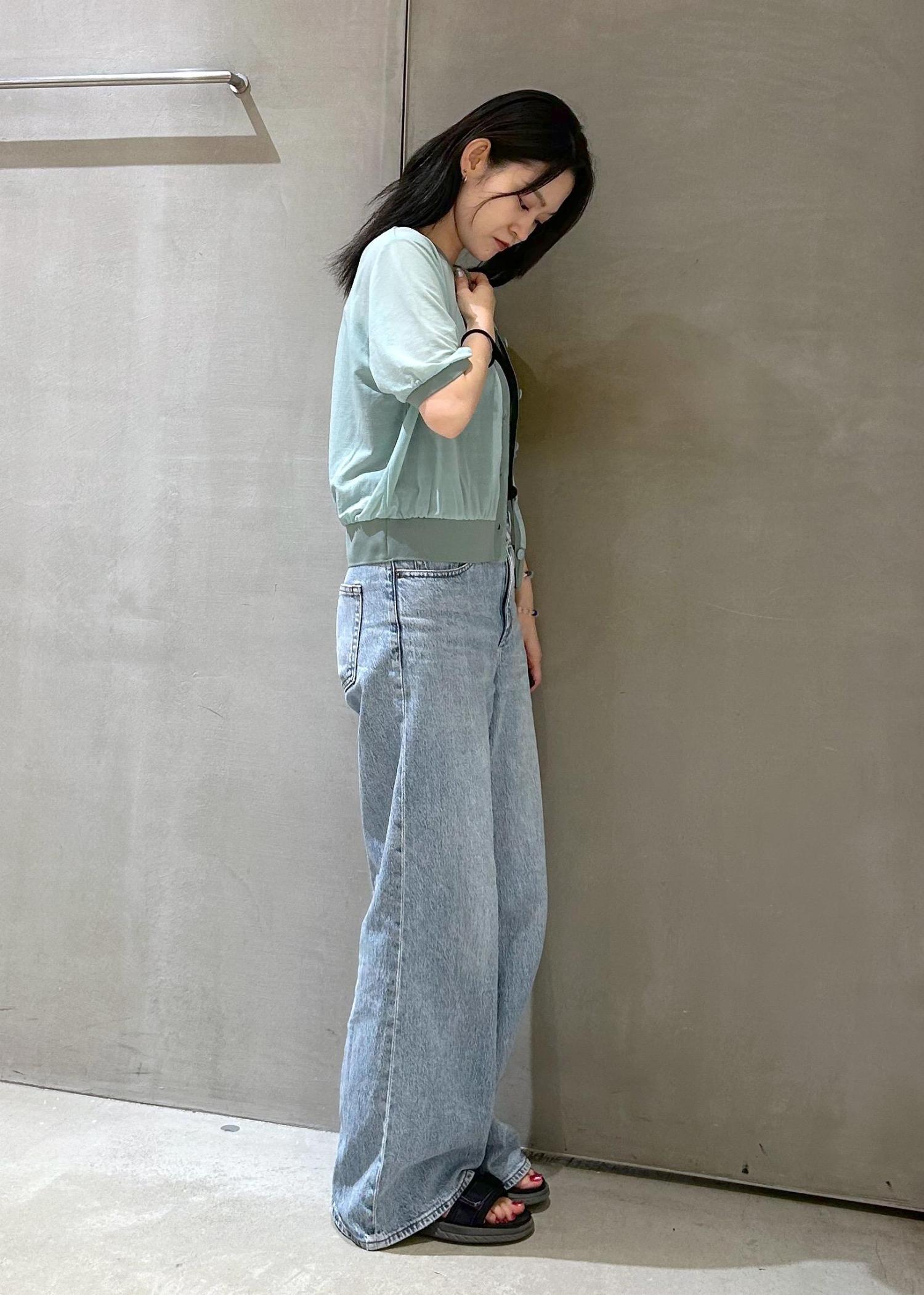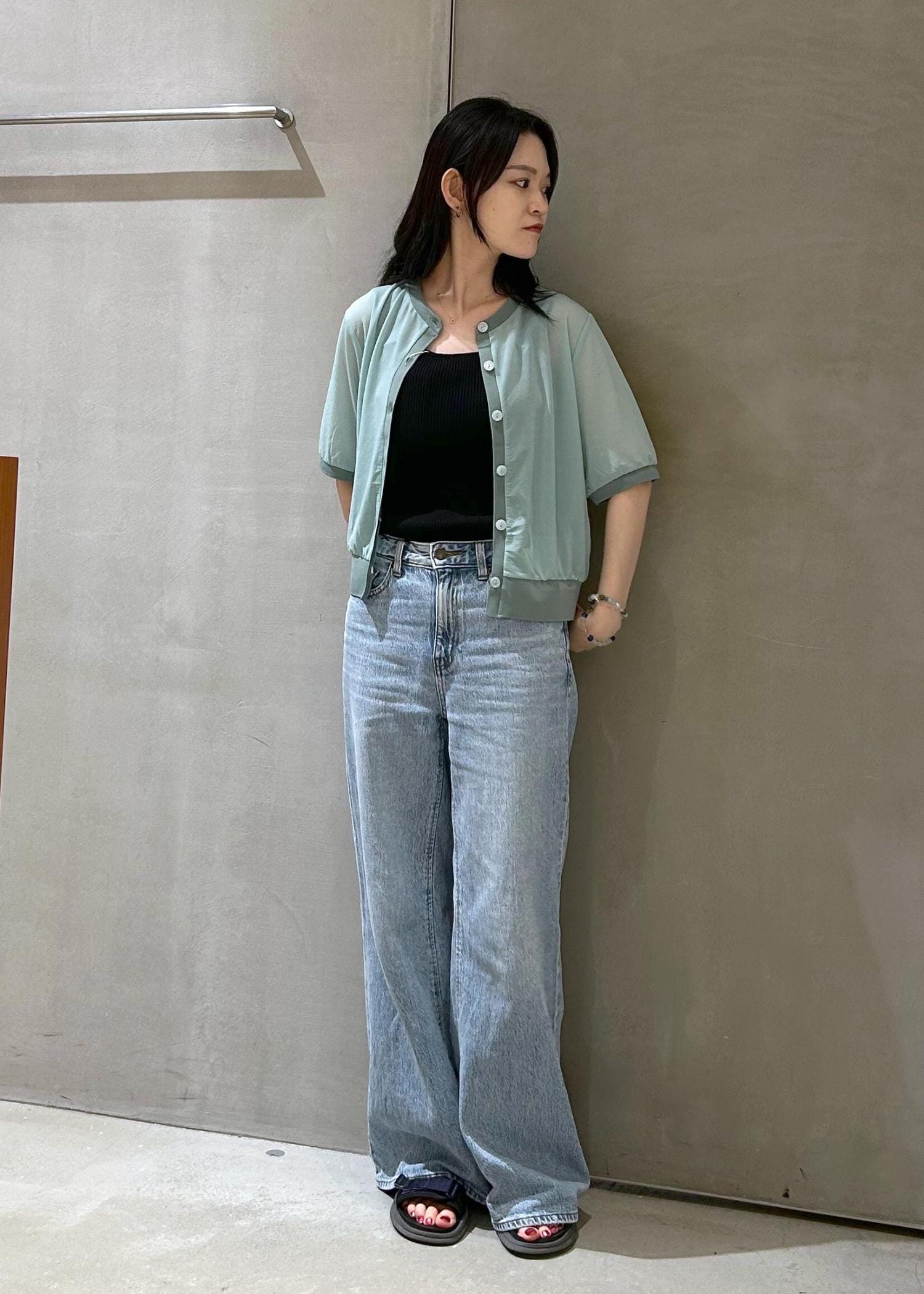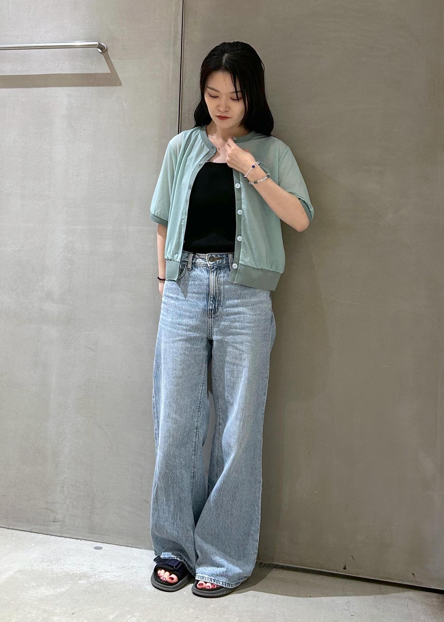 キャミソールやタンクトップに羽織で合わせるとシアー素材が風通しも良く、涼しくて◎
