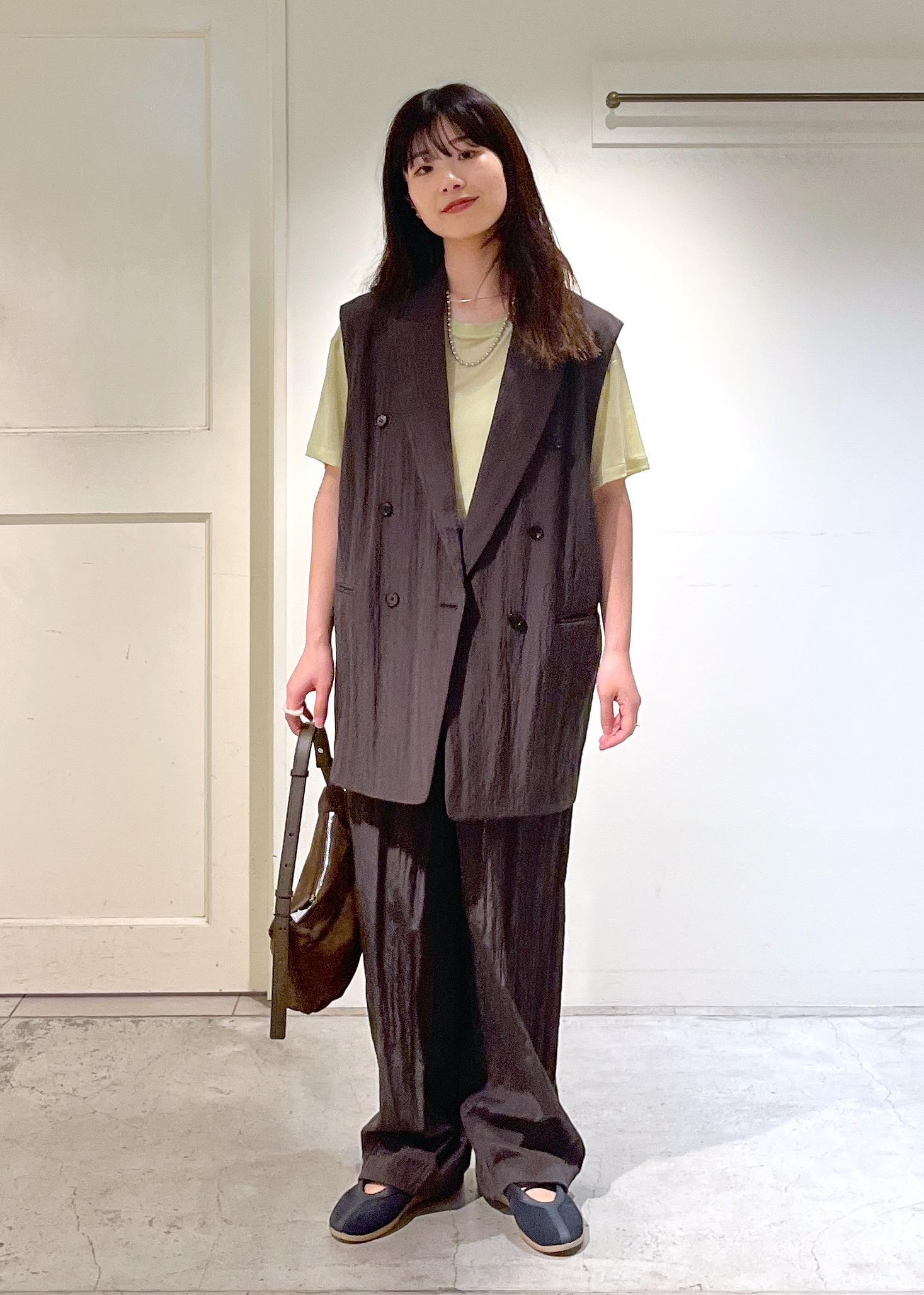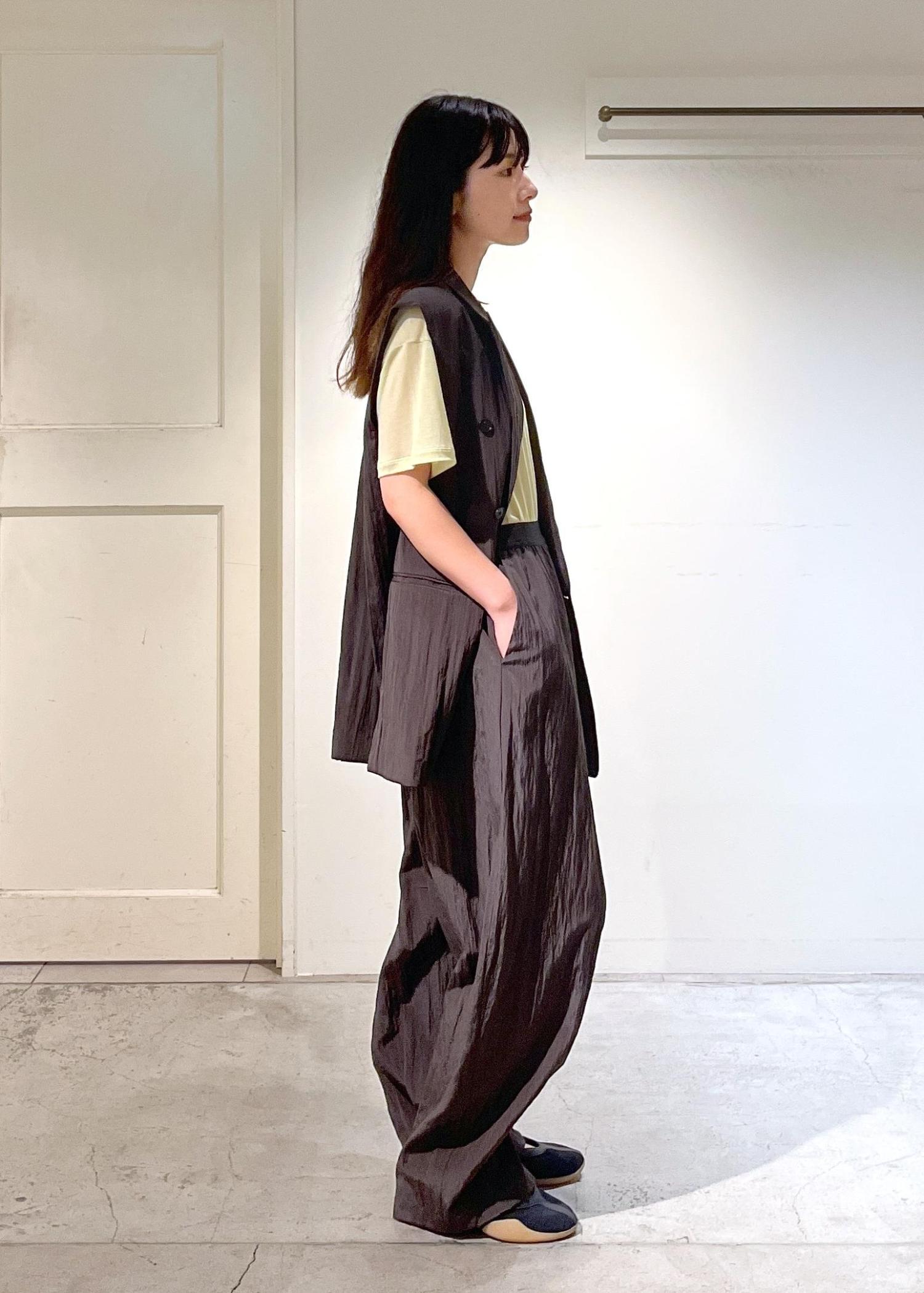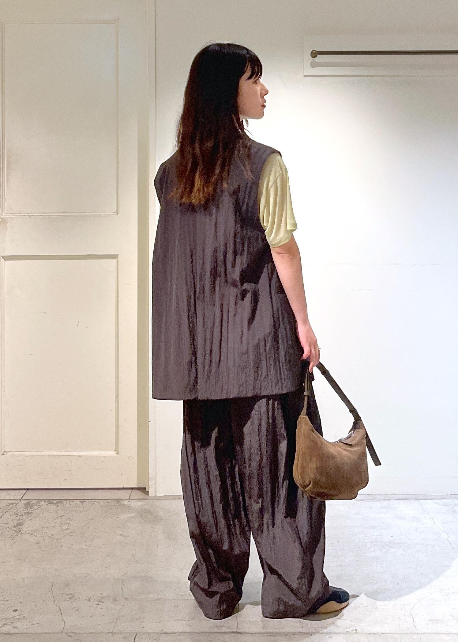 軽いナイロンウール素材。腰回りもゆとりがあるので楽ちんな着心地です。きちんと感のあるスタイルにも合います。 -
