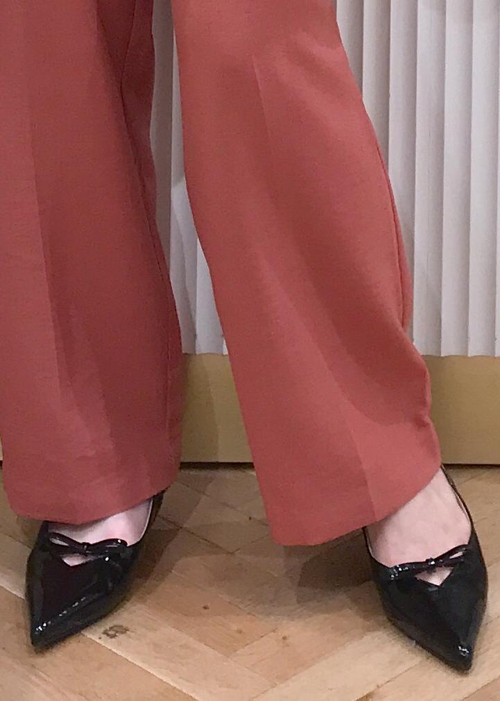 フラットシューズを履いても引きずらずに履けます。