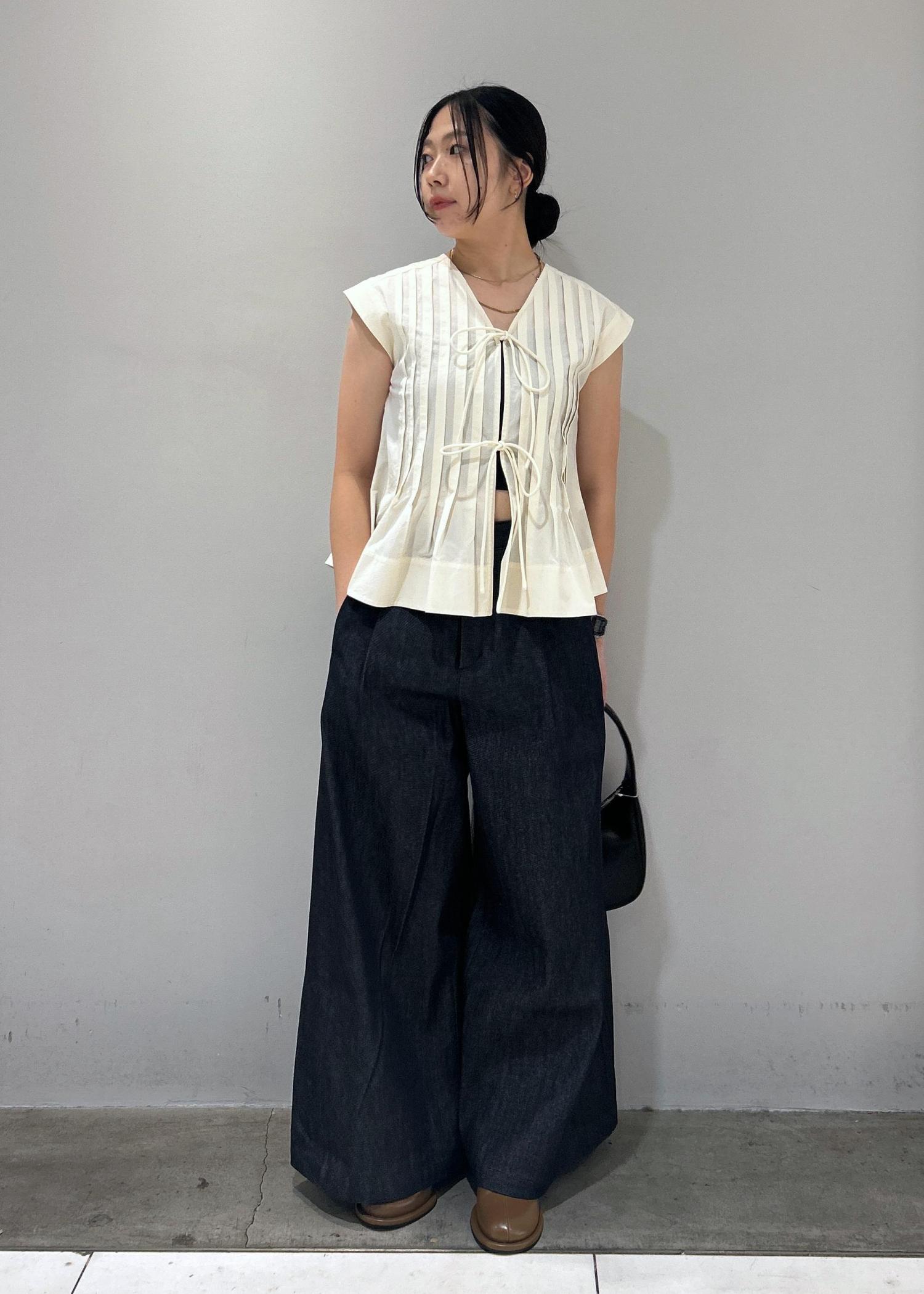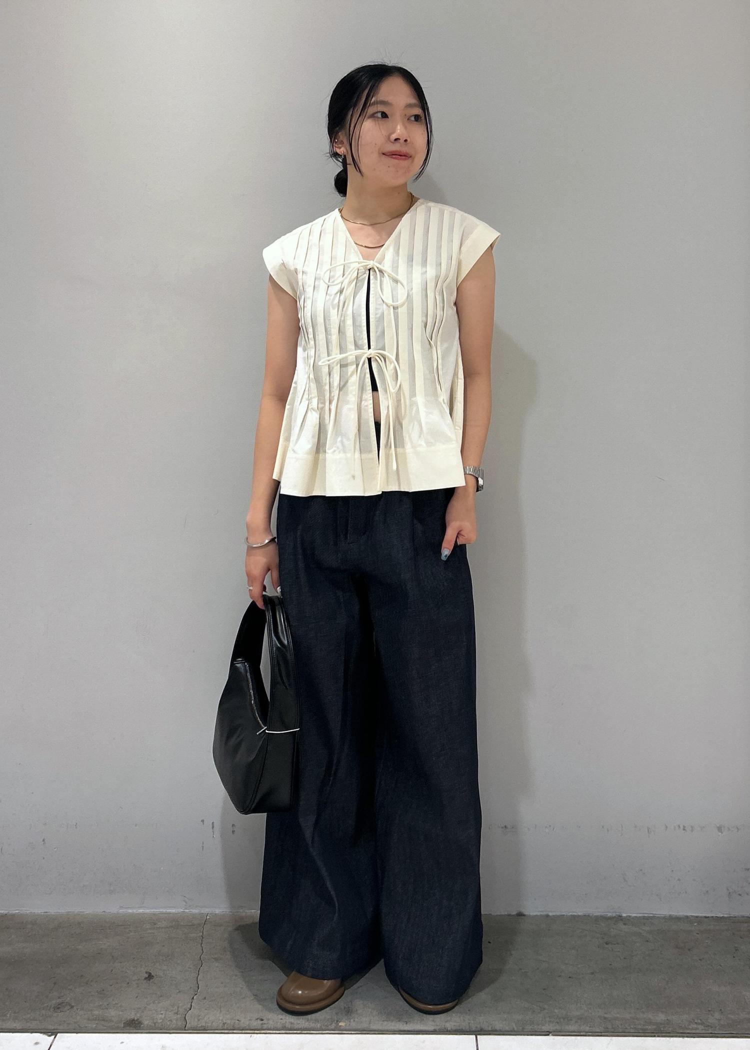 幅広いワイドデニムで、ハリ感のある生地で涼しさとあります◎